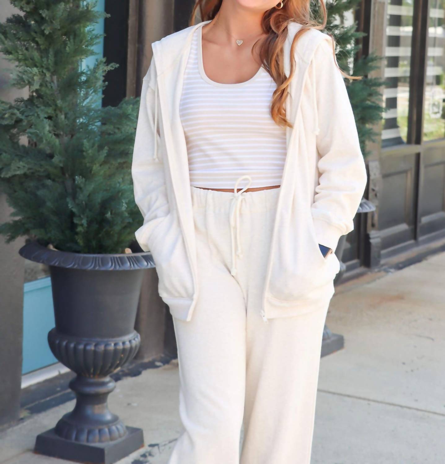 Não importa se você está correndo pela cidade ou relaxando em casa, este moletom serve para ambos. Mantenha-se aquecido neste outono com o Moletom com Capuz Academy Zip Up da Z Supply, criado pensando nas suas necessidades de viagem e lazer. Este moletom com capuz mesclado em tons de aveia possui mangas compridas, capuz com cordão para maior conforto e um prático bolso canguru. Confeccionado em 100% algodão French Terry, oferece um padrão sólido e punho e barra canelados para um ajuste relaxado. Fechamento: Fecho de zíper. Cuidados: Lavar à máquina e secar no varal.