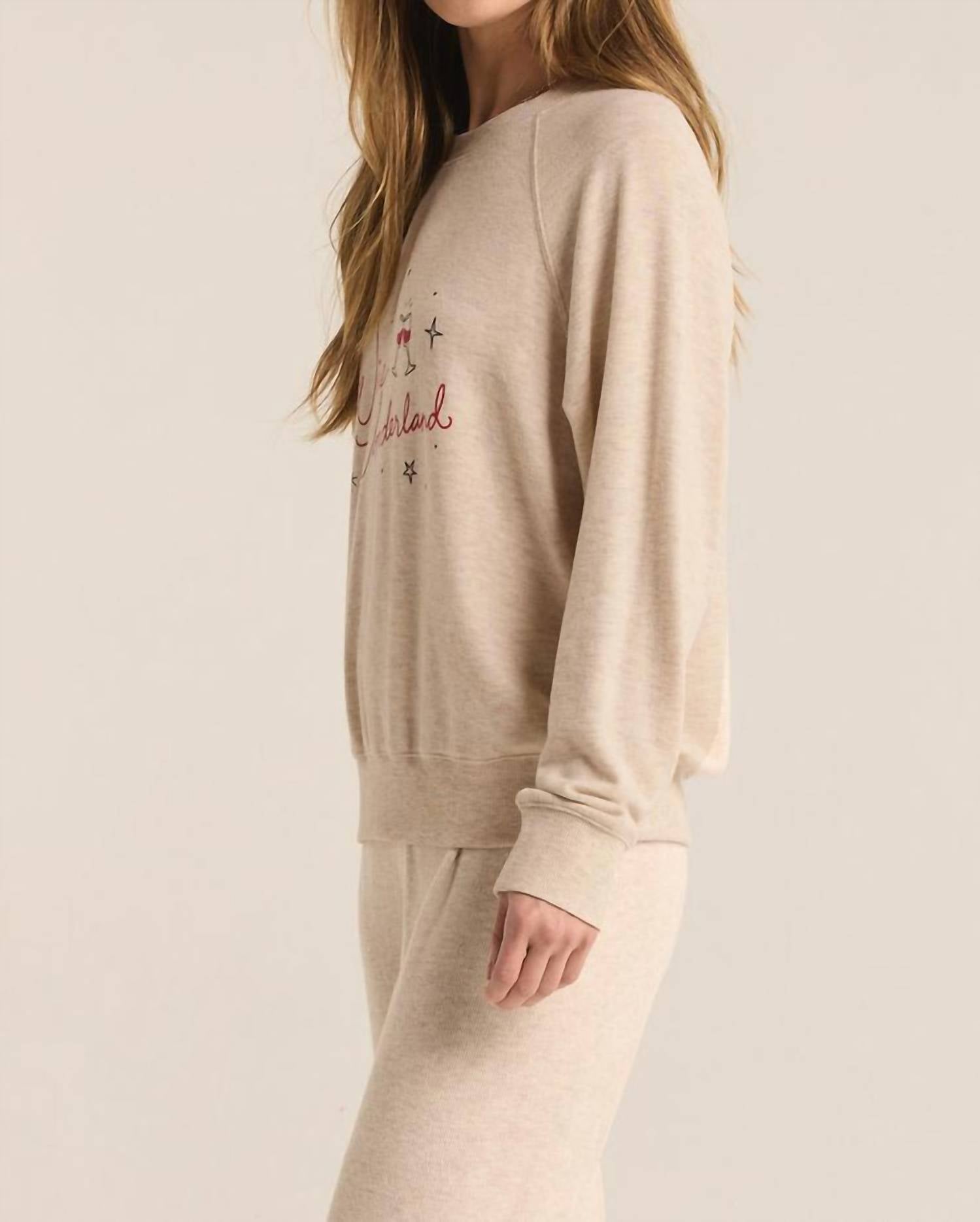 Não importa se você está correndo pela cidade ou relaxando em casa, este moletom serve para ambos. Esta blusa de gola redonda com modelagem regular apresenta a estampa "Wine Wonderland" e é confeccionada em malha Cloud Knit macia, composta por 62% poliéster, 34% rayon e 4% elastano. O design semitransparente inclui mangas compridas e é fiel ao tamanho. A modelo tem 1,72 m e veste tamanho pequeno, com medidas de 76 cm de busto, 61 cm de cintura e 86 cm de quadril. Comprimento da peça a partir do ombro: PP: 58 cm; P: 60 cm; M: 61 cm; G: 61 cm; GG: 63 cm.