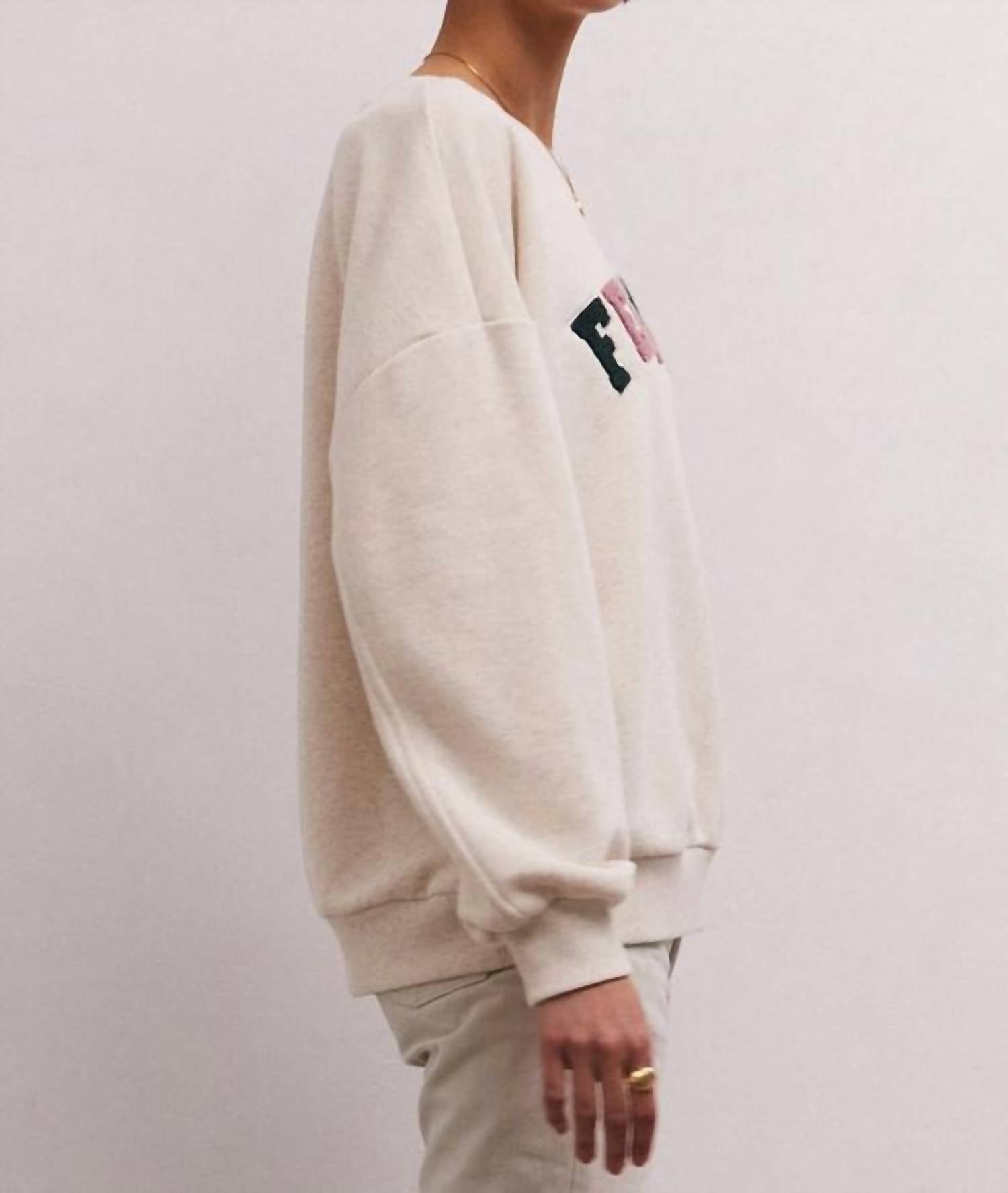 Tecido confortável, design impecável - Conheça o moletom que você nunca mais vai querer tirar. Este pulôver descontraído apresenta a palavra "festive" (festivo) na frente, bordada em chenille multicolorido. Caimento oversized. Moletom com gola redonda. 68% algodão, 17% poliéster e 15% rayon. Tamanho real. Lavar à mão com água fria e pendurar para secar.