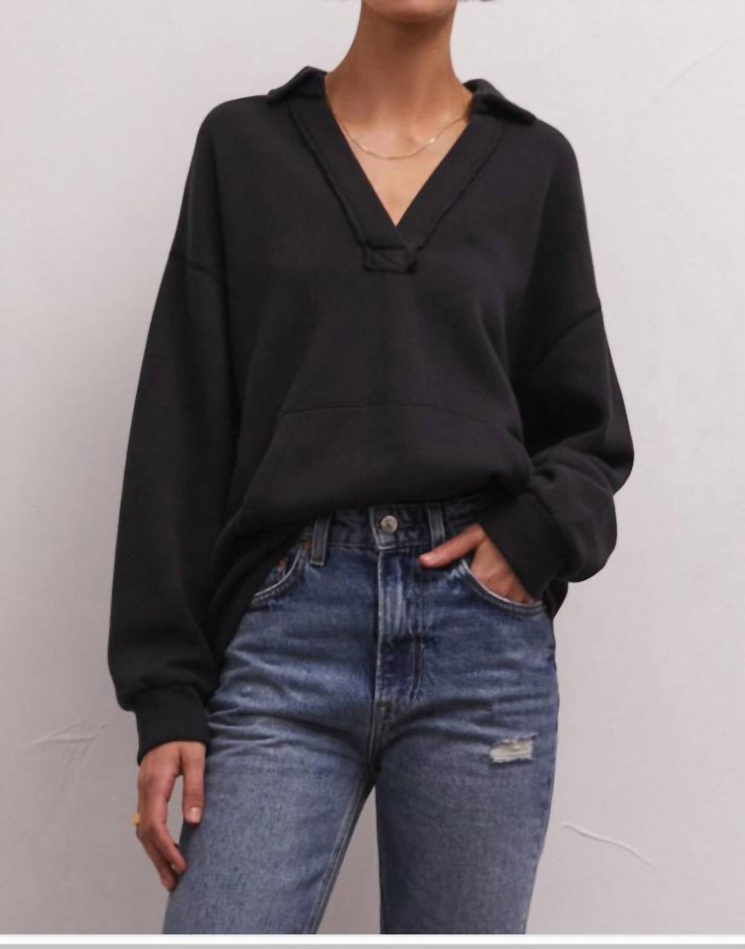 Não importa se você está correndo pela cidade ou relaxando em casa, este moletom serve para ambos. Eleve seu guarda-roupa casual com o Moletom Fleece Good Sport da Z Supply, uma combinação perfeita de conforto e estilo. Este moletom de manga comprida é confeccionado em uma mistura de 80% algodão e 20% poliéster, oferecendo maciez e durabilidade. Com seu clássico decote em V e fecho fácil de calçar, esta peça oferece uma silhueta versátil e chique em preto sólido. Desenhado para um ajuste fiel ao tamanho com bolsos práticos, é uma peça essencial para looks chiques e descontraídos.