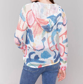 Charlie B - Printed Fishnet Crochet Hooded Sweater
