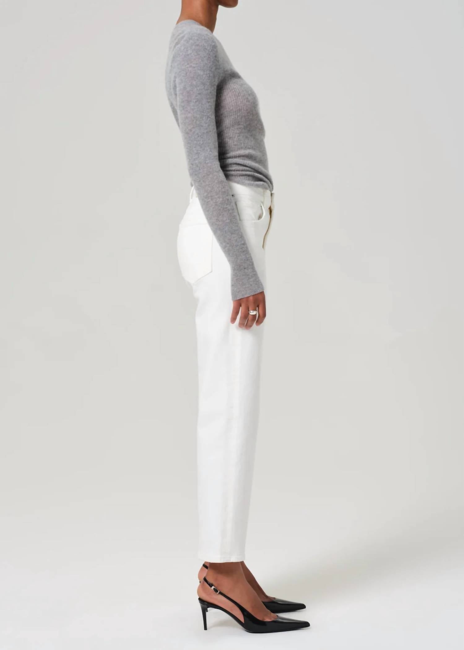 Pair these straight leg jeans with flats, sandals or even heels! You can't go wrong. Introducing the Palma Straight Clean Hem Jeans by Citizens of Humanity, perfect for a minimalist summer style with a soft white hue. These women's jeans feature a high-rise waist and a straight leg silhouette, offering a modern ankle-length cut with an 11" rise and 27" inseam. Crafted from a cotton blend of 94% Cotton, 4% Polyester, and 2% Elastane, this light wash denim provides flexibility with a soft stretch feel. Closure: Zip closure. Care: Machine wash and tumble dry. Perfect for dinner parties or Thanksgiving gatherings.