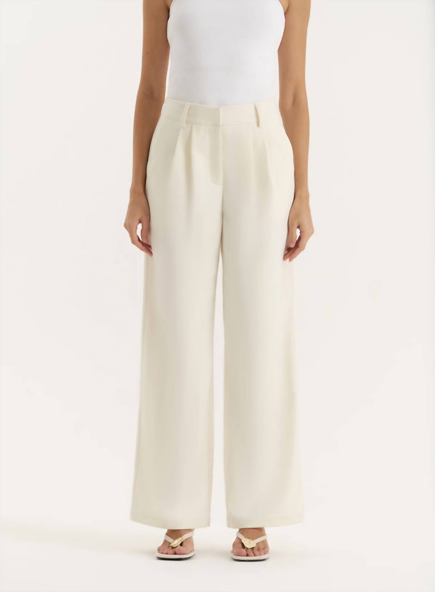 Apresentamos a Calça Kellie Tailored Straight Leg da 4th & Reckless, uma adição sofisticada à sua coleção de roupas de trabalho em um delicado tom Buttercream. Confeccionada em 99% poliéster e 1% elastano, esta calça proporciona um caimento relaxado com um estilo clássico de perna reta. Com cintura média e bolsos práticos, ela combina funcionalidade com elegância para qualquer ocasião de compromisso. Fácil de cuidar, basta lavar na máquina e desfrutar do charme e da versatilidade desta calça.