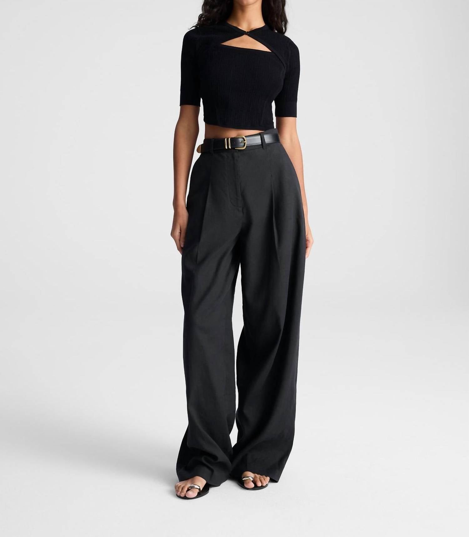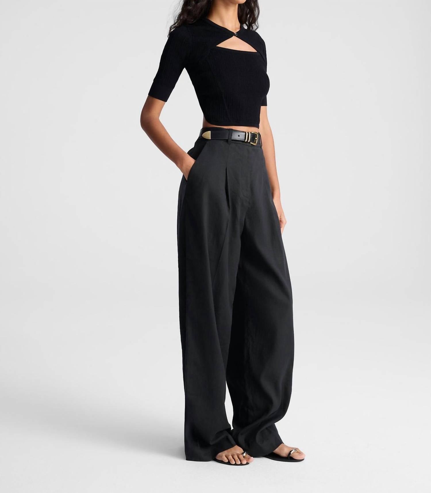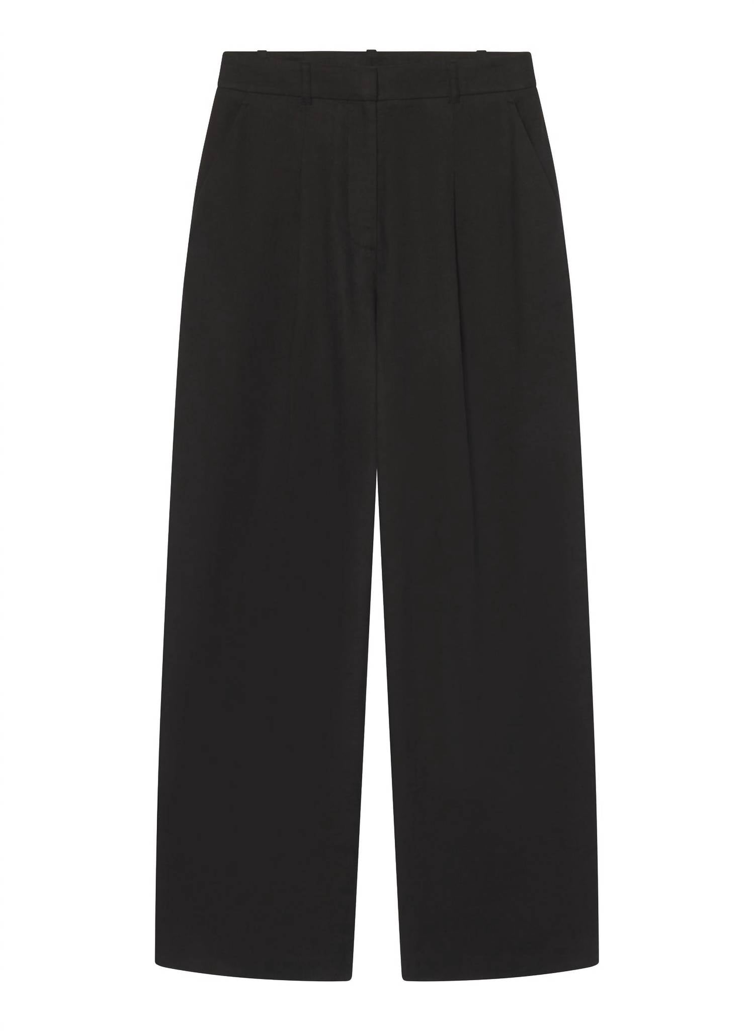 The Charles Pant is made from a breathable blend of Italian stretch linen and cotton, offering subtle stretch and a relaxed twill texture in a timeless black. This floor-length style features a high-rise waist that sits just below the navel, with refined front pleats and wide, relaxed legs. Functional side slash pockets and back welt pockets add both practicality and a polished finish to the design.