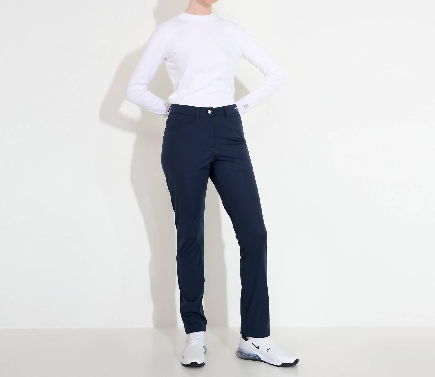 Elevate your game with the Bounce Waterproof Golf Trousers by Abacus Sportswear US, a must-have for any avid golfer. Designed in classic navy, these trousers are crafted in a flexible nylon fabric that boasts a 4-way stretch and superior breathability. Engineered with a zip closure, regular fit, and mid-rise, they feature straight legs and functional pockets, providing both comfort and practicality on the course. Care is effortless with machine wash and line dry instructions, making them the perfect addition to your athleisure wardrobe for game day.