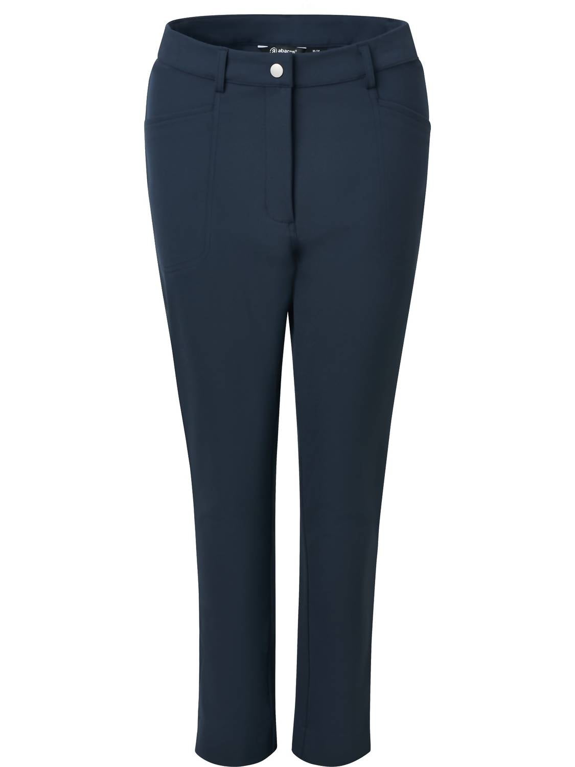 Introducing the Elite 7/8 4-ways Stretch High Waist Golf Trousers by Abacus Sportswear US, the ultimate choice for game day comfort and style in classic navy. With a high waist and slim fit, these trousers feature a breathable, 4-way stretch polyester material and a straight leg style for freedom of movement. Thoughtfully designed with front zip closure, two front and two back pockets, and a silicon tape to secure your scorecard, they offer convenience without compromising on style. Care is a breeze with machine wash and line dry instructions; inseam for size 8 is 26" (66cm).