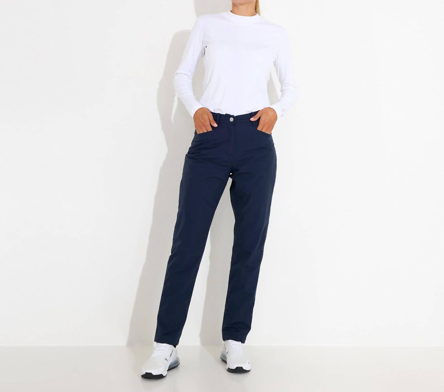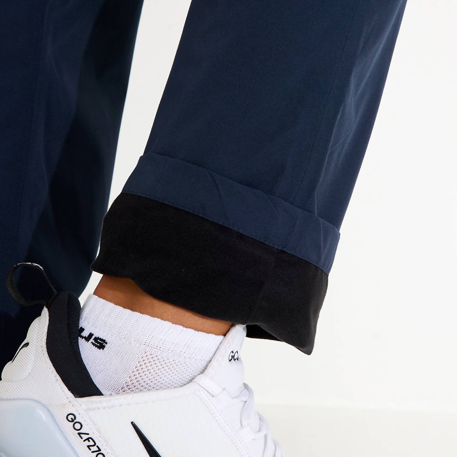 Introducing the Links Warm Waterproof Trouser by Abacus Sportswear US, designed for optimal performance and comfort. These navy trousers are crafted from a breathable, waterproof polyester with a 2-way stretch to enhance movement. They feature a mid-rise elasticated waist with a zip closure, accommodating a regular fit and straight leg style, ideal for active endeavors like golf or a stroll through the woods. Equipped with both front and back pockets, these trousers deliver functionality, while their brushed tricot lining ensures warmth. Care: Machine wash, line dry.