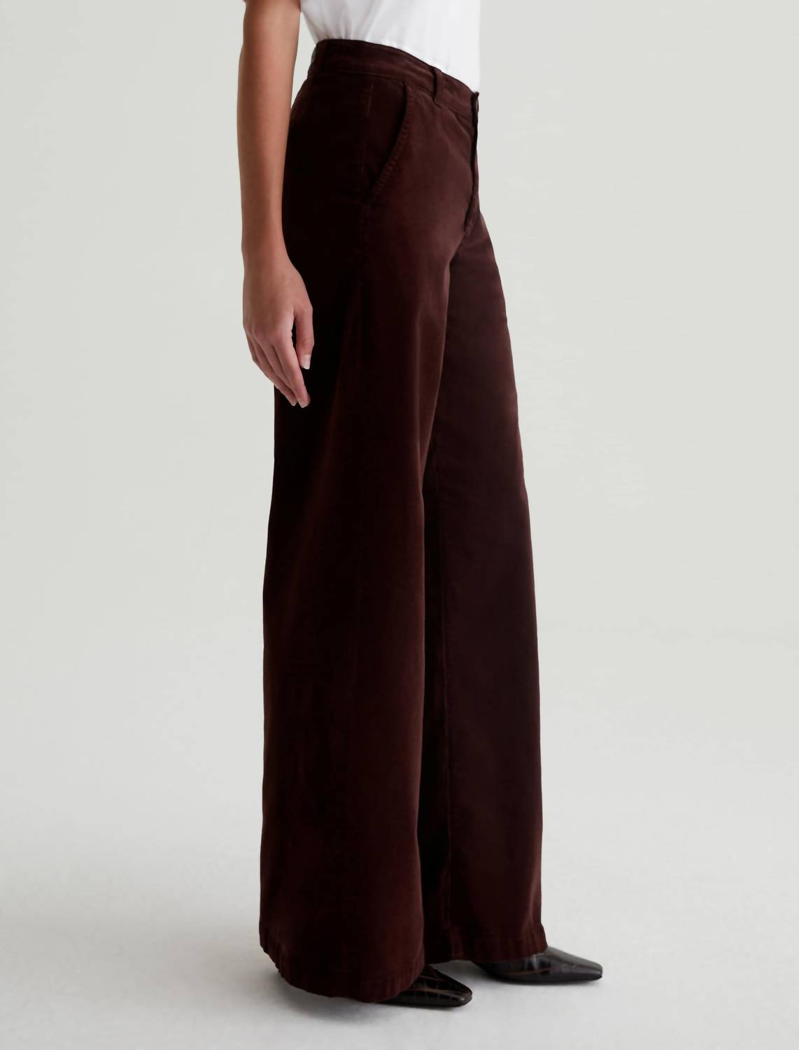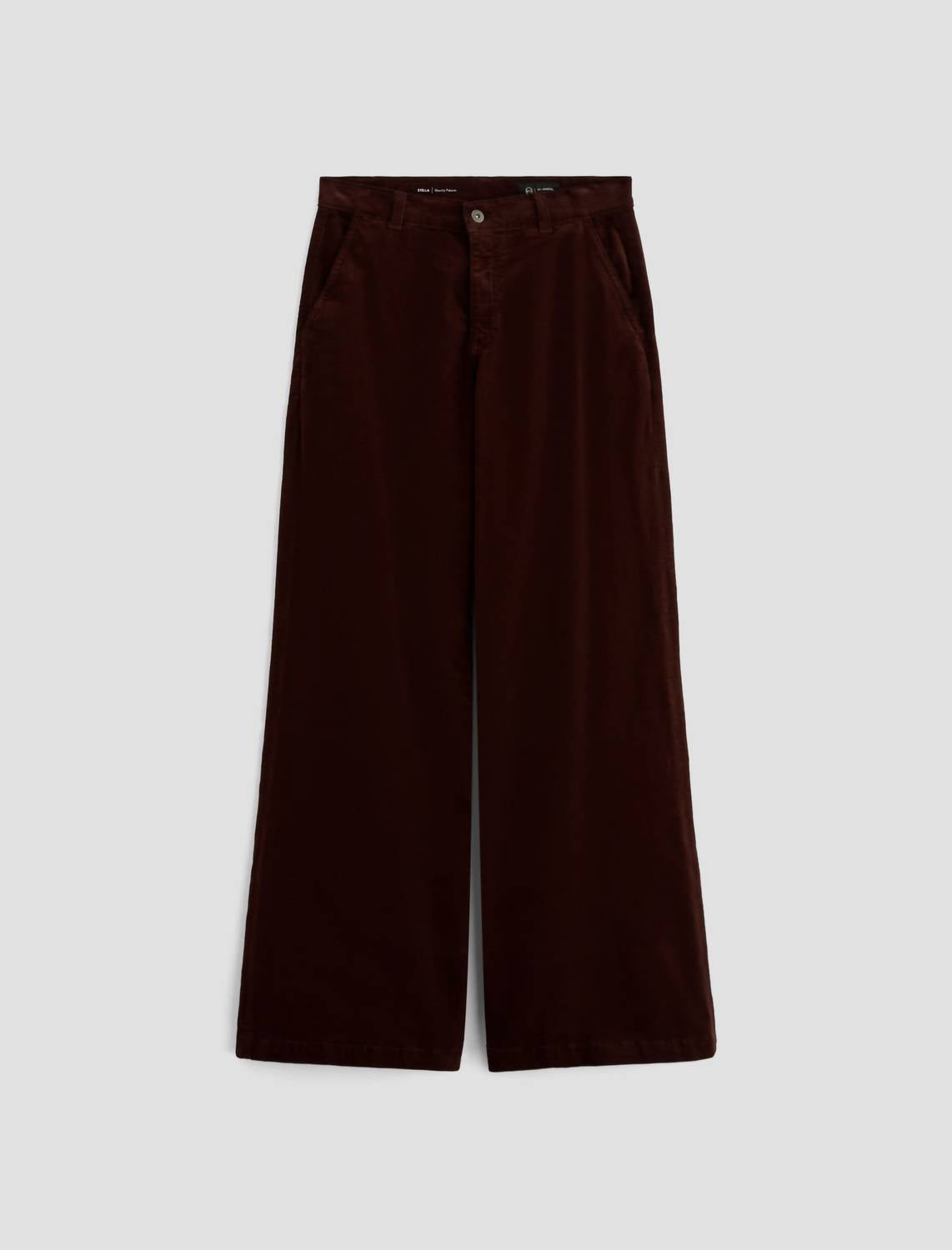 Discover the Stella Low Slung Palazzo Corduroy Pants by AG Jeans, an elegant choice for a chic look in Alpine Bark. Crafted from an 8.3 oz. Novel Stretch Mini Corduroy with a composition of 98% Cotton and 2% Elastane, these pants are designed for comfort and style. Sporting a relaxed fit and low-slung waist, they feature a super-wide leg style with a front rise of 10 1/2", knee opening of 23 1/4", bottom opening of 25", and an inseam of 32 1/2", accentuated by slant front pockets. Originating from Mexico, these pants come with a zip closure and require machine wash with tumble dry instructions, making them perfect for fall evening events.