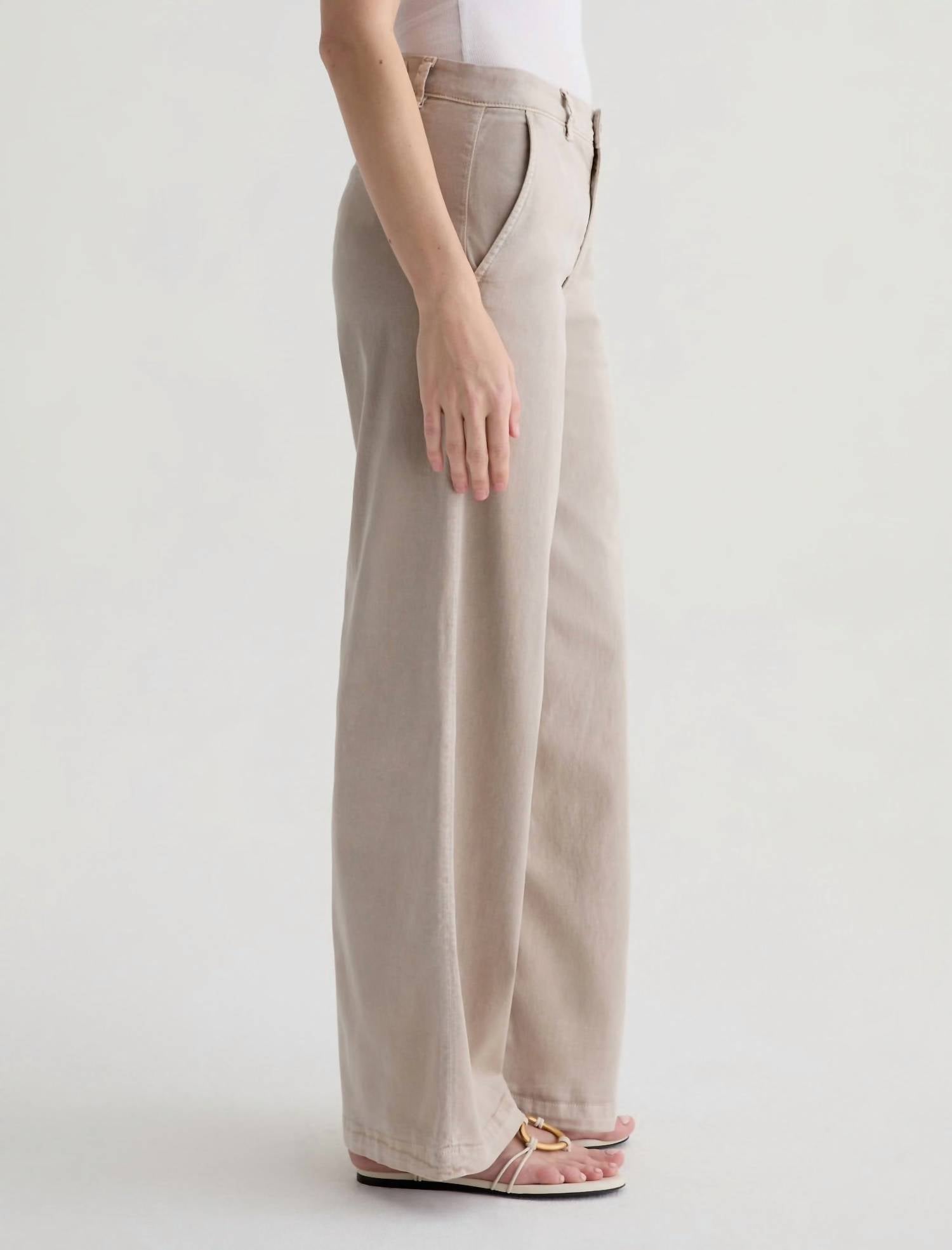 Discover the Women's Caden Wide Leg pants by AG Jeans, the perfect choice for a relaxed yet chic look. These powder white trousers boast a high-rise, regular fit with a roomy wide leg design, perfect for your streetwear-inspired spring wardrobe. Made from a cotton blend Stretch Cotton Tencel™ Twill, they feature practical slant front and welt back pockets for added convenience. Closure: Pull on. Add them to your vacation essentials for a versatile style.