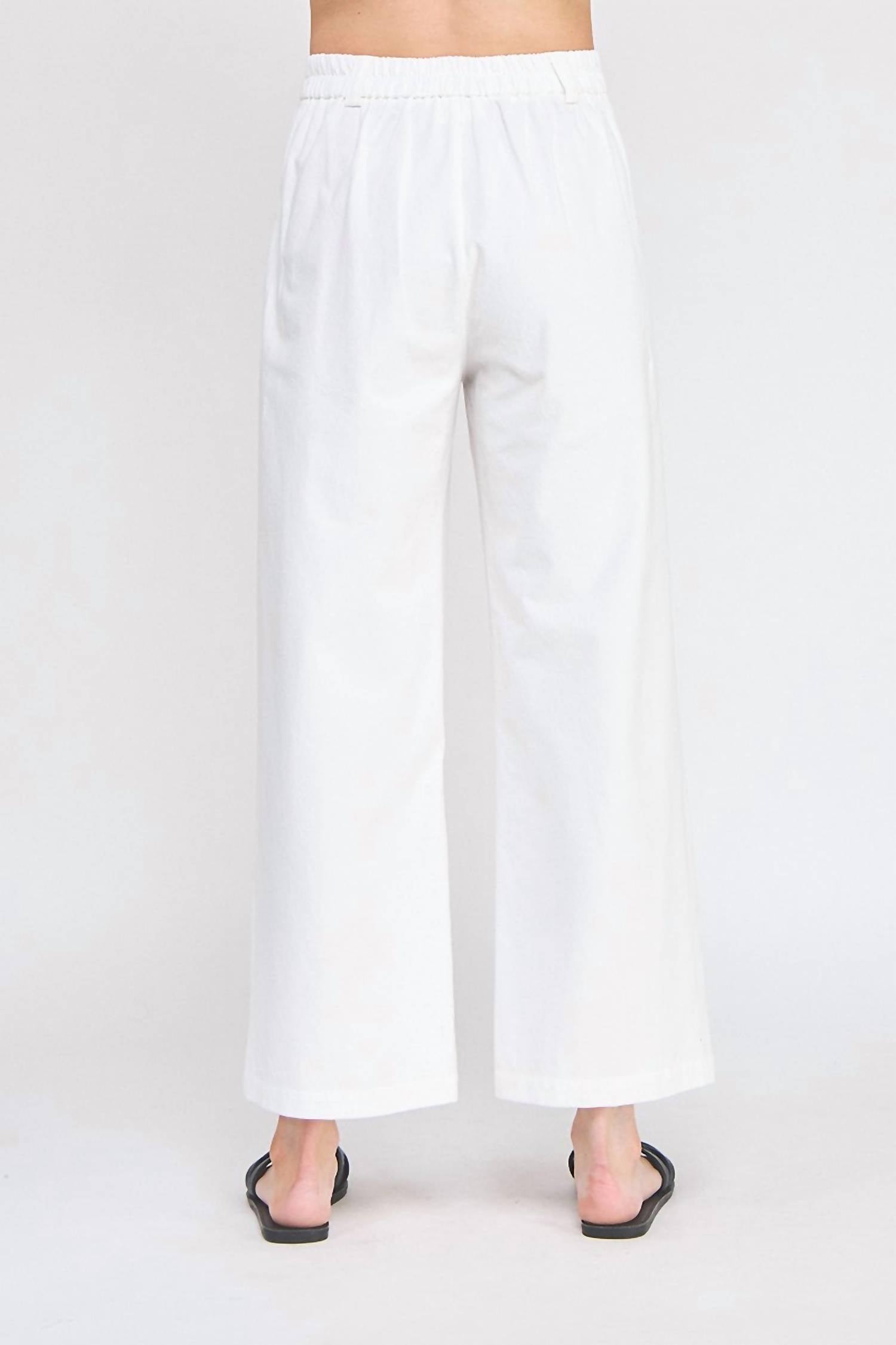 Experience the perfect combination of style and comfort with ALLIE ROSE's Coconut Breeze Pants in white. Crafted entirely from soft cotton, these women's wide-leg pants feature a high-rise comfort fit design with chic accent buttons adding an elegant touch. The solid pattern and button closure create a minimalist look, ideal for a holiday party or Thanksgiving gathering. With the convenience of pockets, these pants are your go-to choice for both fashion and ease.