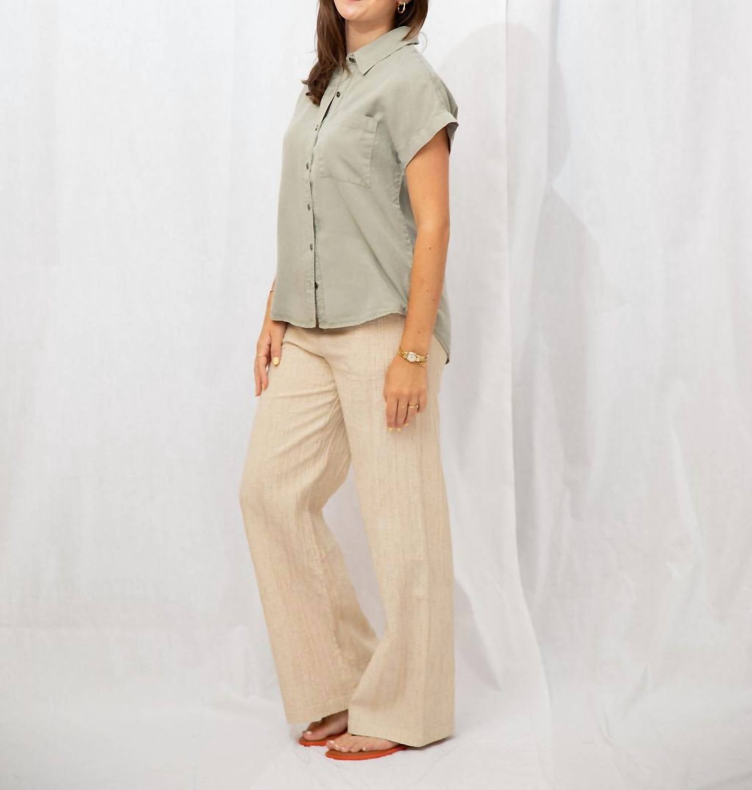 Discover the Elyna Wide Leg Pants by ALLIE ROSE, designed for the modern woman looking for sophistication and comfort. These beige pants feature a textured cotton blend fabric with a relaxed, easy fit and a comfy elastic waistband. Closure is achieved with a zip for convenience, and they include pockets for practicality. Care instructions advise a machine wash and tumble dry, ensuring effortless maintenance for a chic, cool style ideal for work, weekends, or travel.