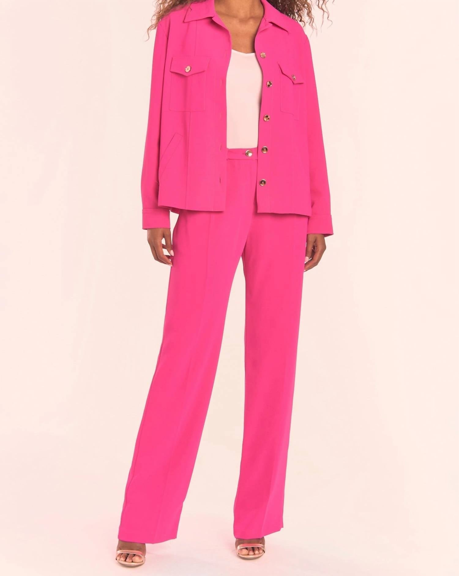 Eleve seu estilo com a Calça Veda da Amanda Uprichard em um rosa vibrante e vibrante. Esta calça de cintura alta apresenta uma discreta prega central frontal para um visual sofisticado. Perfeita para qualquer ocasião, ela traz um toque de cor ao seu guarda-roupa com seu design de estampa sólida.