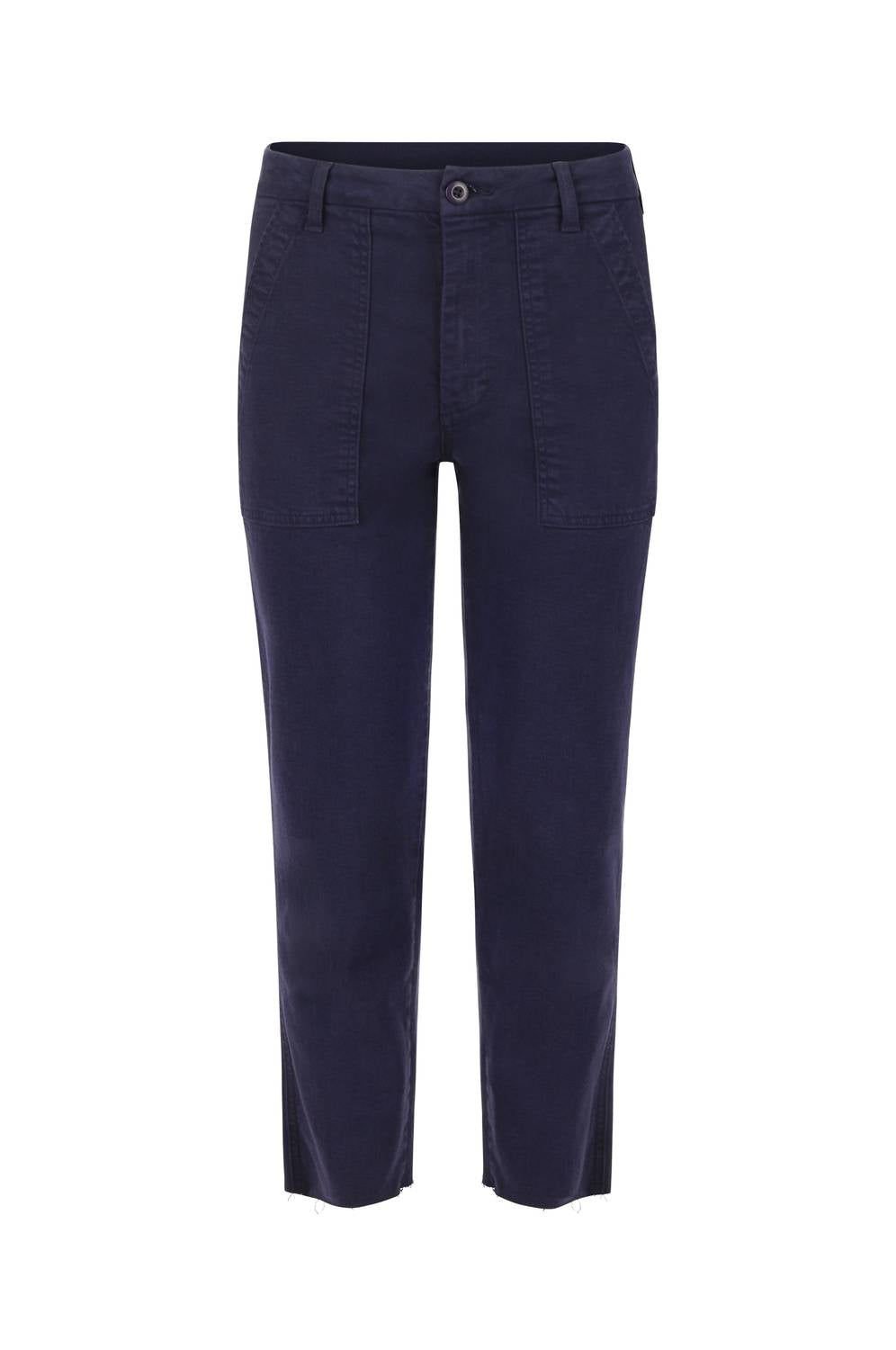 Introducing the Easy Army Trouser by AMO in a stunning Twilight shade, the ultimate blend of classic style and modern edge. These trousers feature a high-rise waist with a slightly dropped crotch, cropped straight leg, and utilitarian front and back patch pockets. Crafted from a comfortable cotton blend (70% Cotton, 29% Lyocell, 1% Lycra) in Los Angeles, they offer an easy fit with precise dimensions: 25.5" inseam, 11.5" front rise, and 14.75" leg opening. Closure is achieved with a button closure, and care is a breeze with machine wash instructions. Perfect for a holiday party or minimalist spring wardrobe refresh. Nike wears a size 25 and stands at 5'9.5".