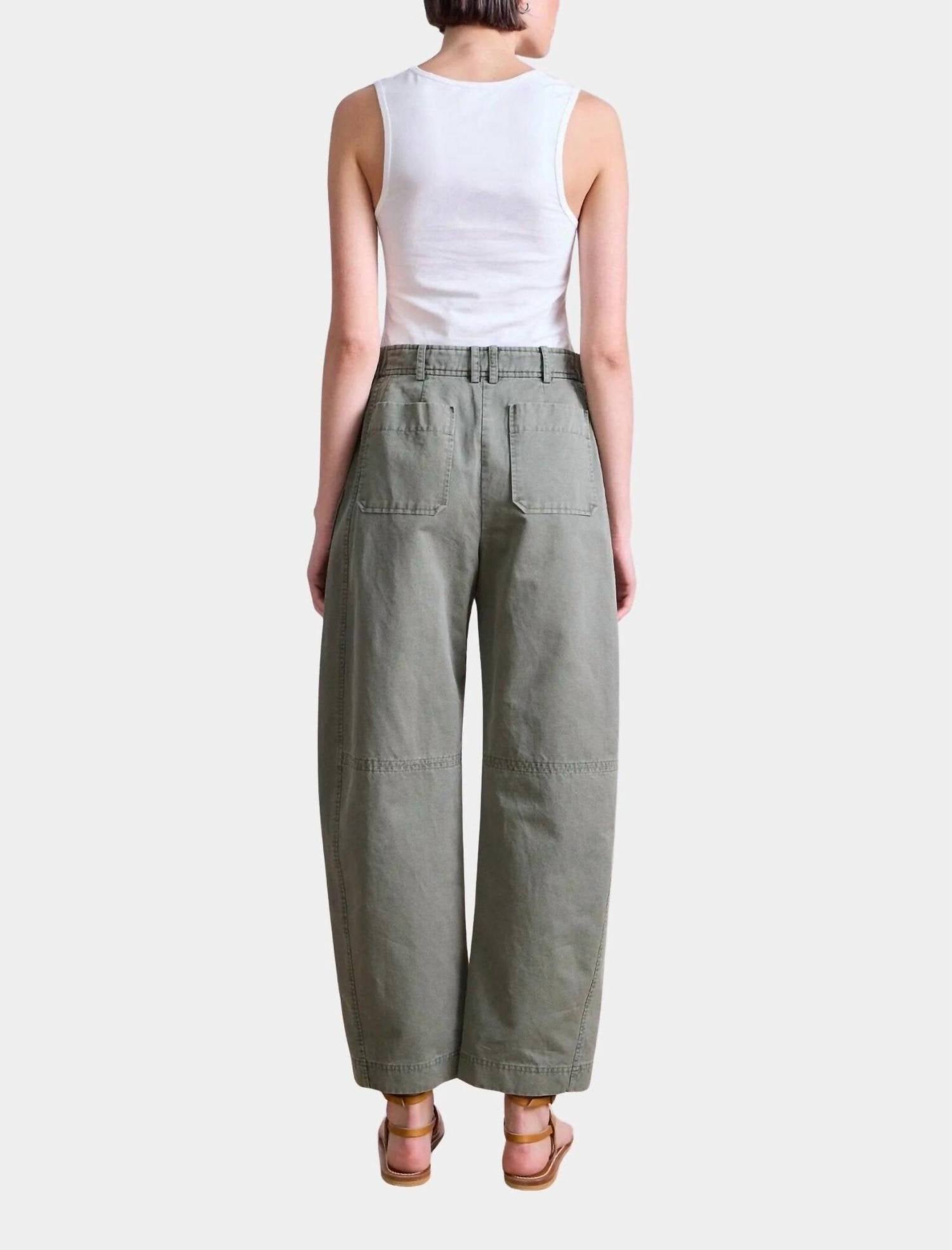 No gym necessary for these cool-girl joggers. Experience the comfort of the Marina Chill Pant in Thyme by Apiece Apart, an essential pick for your summer wardrobe. These high-rise, relaxed fit pants feature straight legs and pockets for practicality, with a button closure for easy wear. Crafted from a breathable blend of 75% cotton and 25% linen, these pants are made in China and exemplify a chic, solid streetwear trend. Care instructions recommend dry cleaning or cold machine wash and lay flat to dry; model is 5'10" and wears a size 4, fitting true to size.