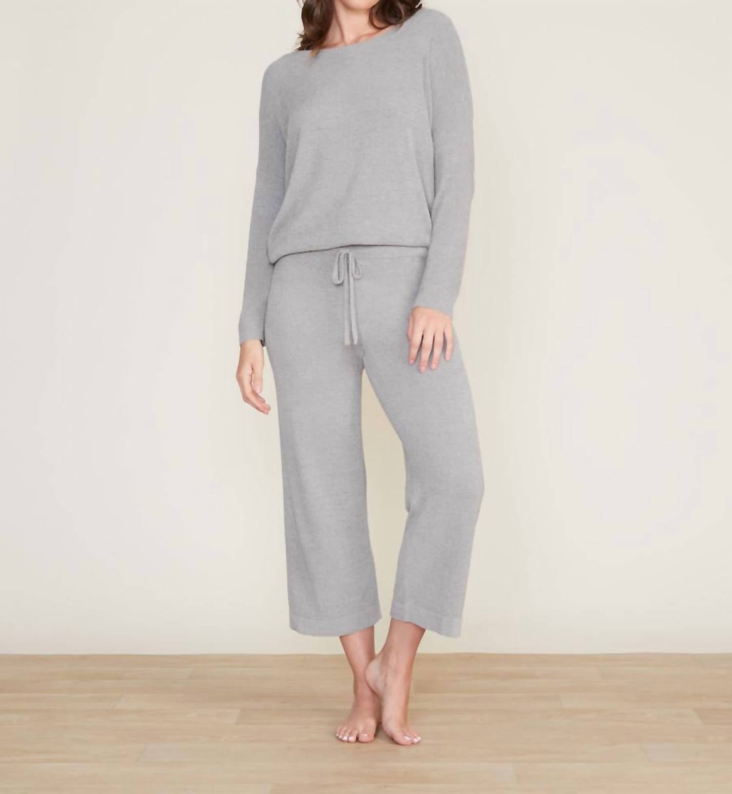 Stay on-trend and showcase your impeccable taste with these adaptable and stylish cropped pants. The perfect length to wear with your favorite mules. You'll love the fit! Embrace understated elegance with the Cozy Chic Ultra Lite Culotte by BAREFOOT DREAMS in a sophisticated Dove Gray. These sleeveless, high-rise pants feature a regular fit and wide leg style, perfect for minimalist spring outfits. Crafted from a 71% nylon and 29% viscose blend, these culottes ensure comfort and style in one. Closure: Pull on. Care: Machine wash cold, gentle cycle, lay flat to dry or tumble dry low, and avoid bleach, dryer sheets, or fabric softener.