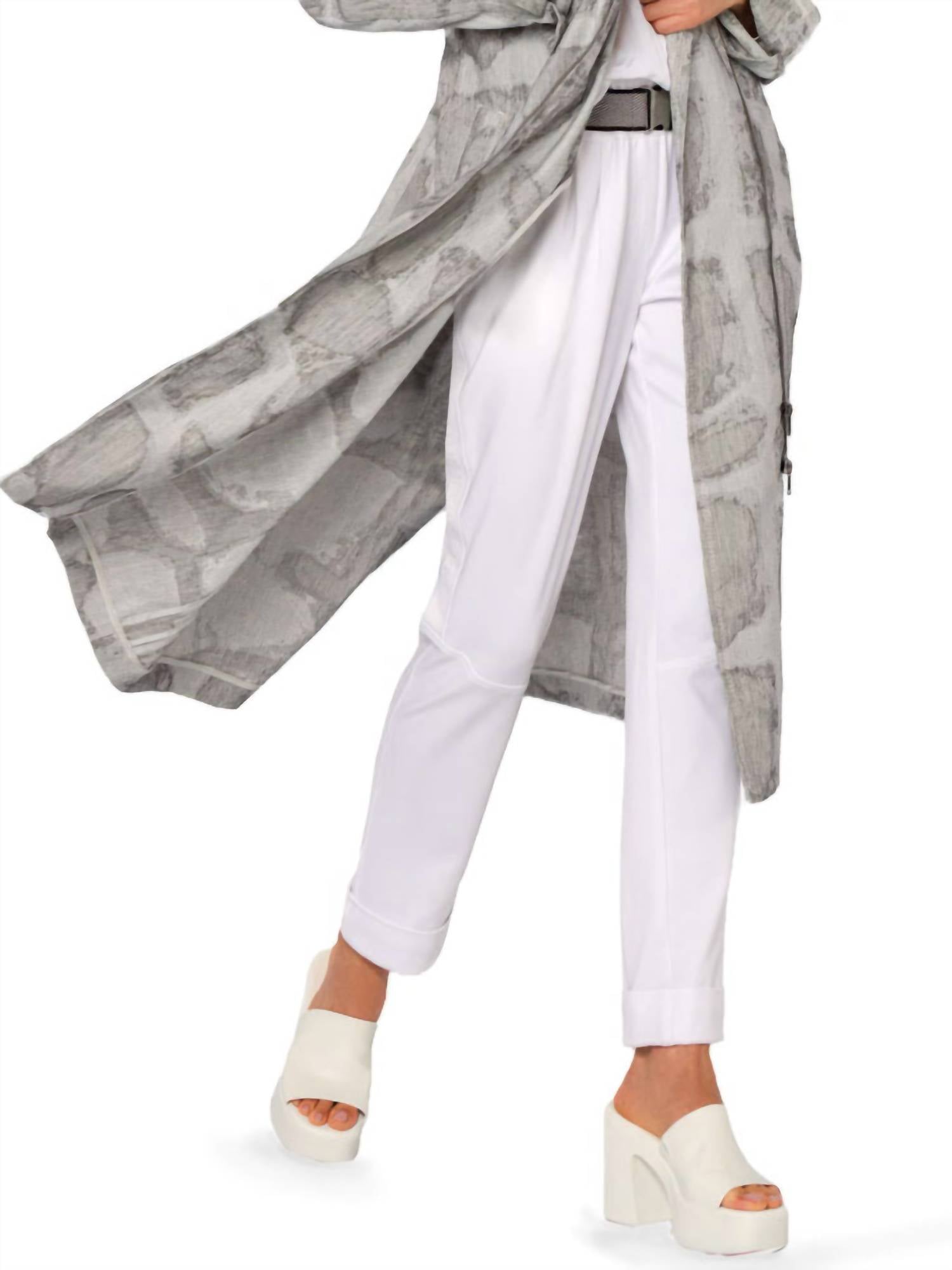 Combine-os com seus tênis favoritos para um visual descolado e descontraído. A calça jogger casual BLAIR branca é uma peça de caimento impecável, com prega frontal, da Beate Heymann. Adoramos a costura frontal e os detalhes em fita para um corte slim. Inclua esta peça no seu uniforme do dia a dia para um visual elegante e casual ao mesmo tempo! Cinto incluso.
