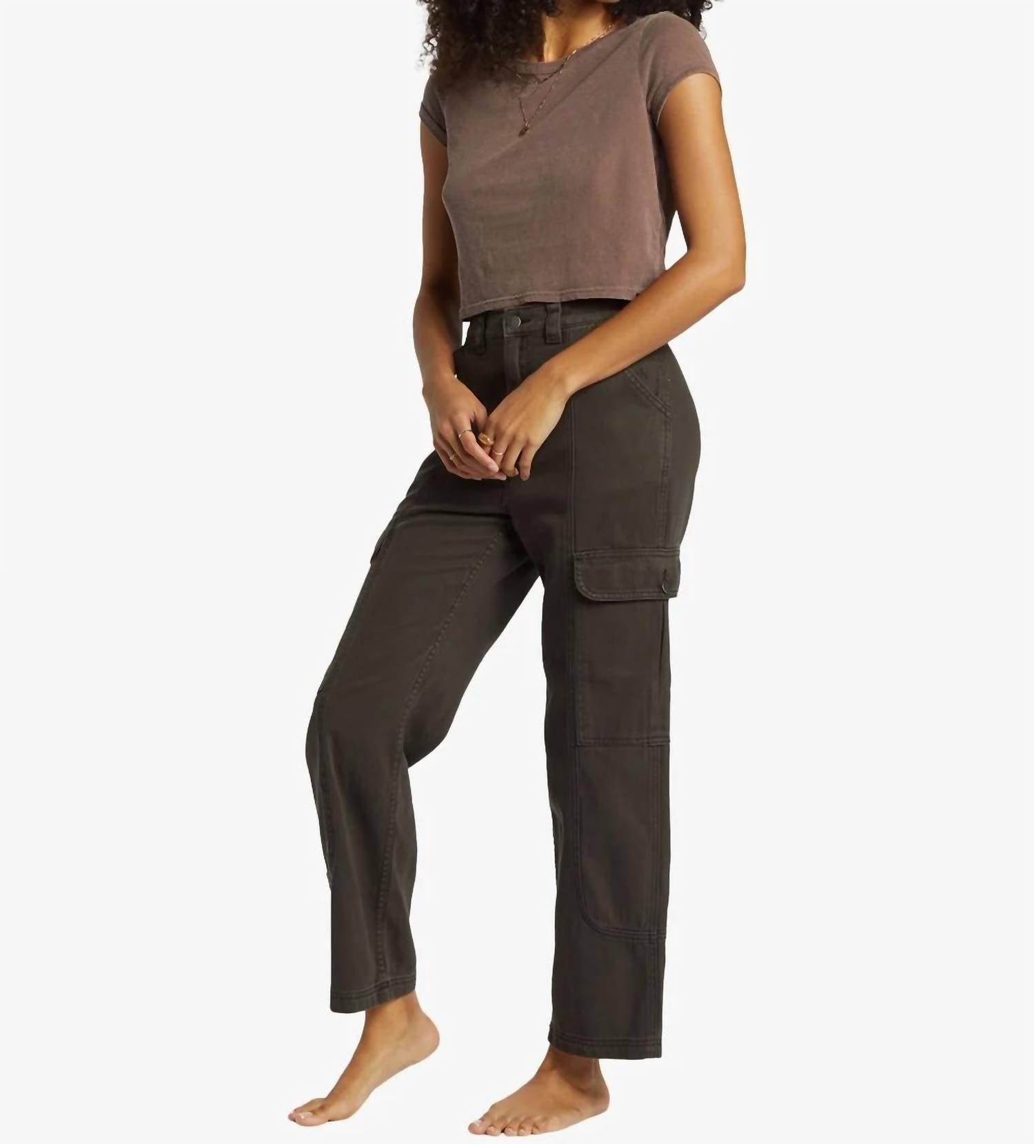 This straightleg pant is both stylish and comfortable. Did we mention the fit is perfection? Introducing the Wall To Wall Denim Cargo Pants by Billabong, a must-have for your stylish wardrobe. These women’s pants come in a minimalist BSD-Black Sands solid color with a high waisted fit and a classic straight leg style. Crafted from eco-conscious cotton, they feature a button closure and practical pockets with contrast stitching for added flair. Easy to care for, simply machine wash and tumble dry according to the care instructions. Perfect for music festivals, these pants combine the allure of military style with a nod to Y2K fashion.
