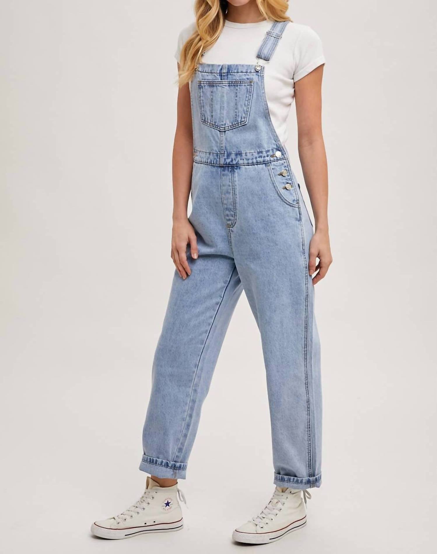 Meet the Everly Denim Overalls by BluIvy, the perfect fusion of timeless utility and modern edge with a streetwear twist. These light wash, straight-leg overalls offer a high-rise, regular fit silhouette crafted from 100% cotton, promising comfort and style. Featuring adjustable straps and a roomy front pocket, their side button closures ensure an easy, throw-on-and-go style. Ideal for casual outings or vacation getaways, these versatile overalls are machine washable and can be tumble dried for effortless care.