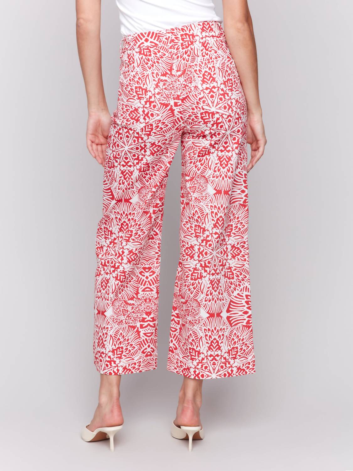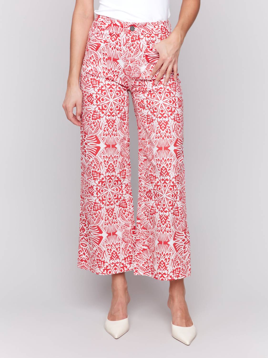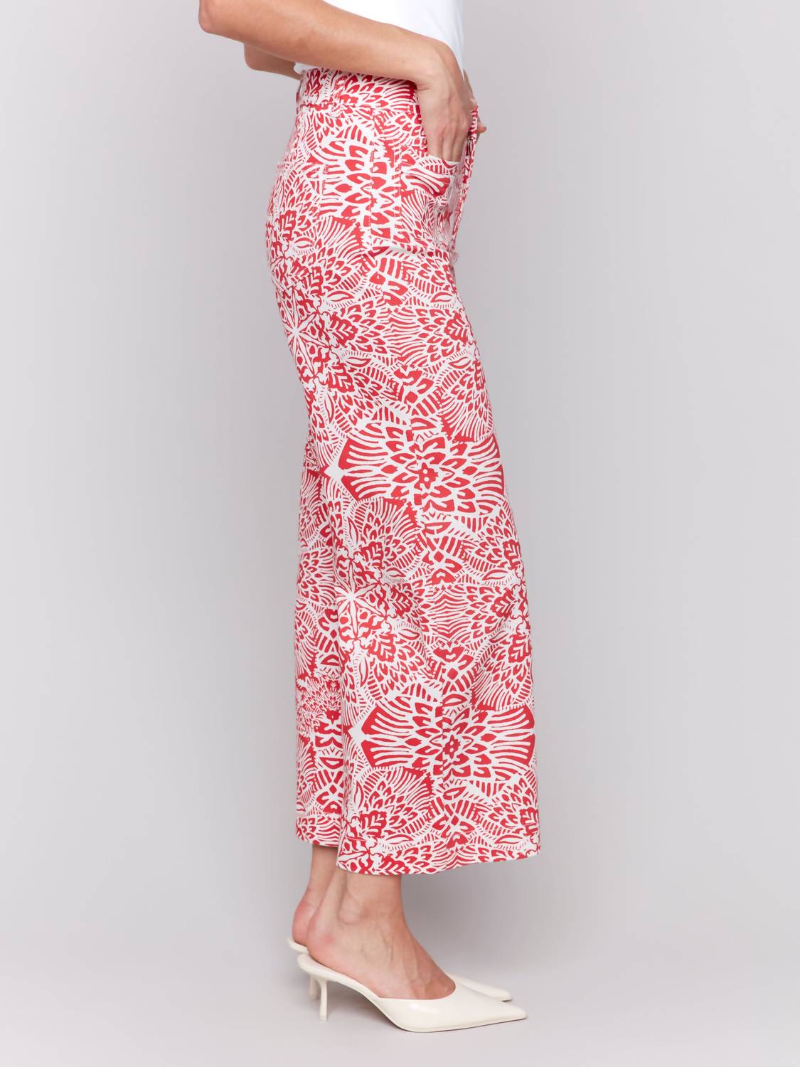 The trend report says boot-cut is in and that's exactly why we love this style. They are fit to perfection, flattering on any body type, and comfortable. They will be your go-to all season long. Introducing the Pink Printed Flare Pants With Patch Pockets by CHARLIE B, a must-have for any spring wardrobe. Crafted from a comfortable cotton blend, these pants boast a relaxed fit with a flared leg and mid-rise waist, complete with a button closure for a secure fit. The inseam measures 27" with a 12" leg opening, providing a perfect length for everyday wear. Care is hassle-free: machine wash on a delicate cycle in cold water, avoid bleach, hang to dry, and iron on low if needed.
