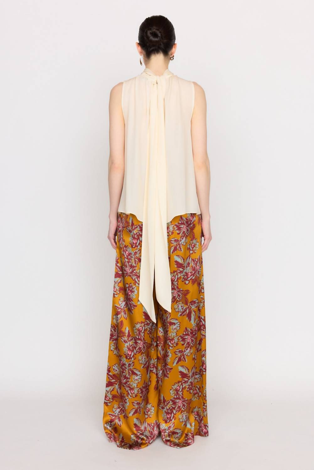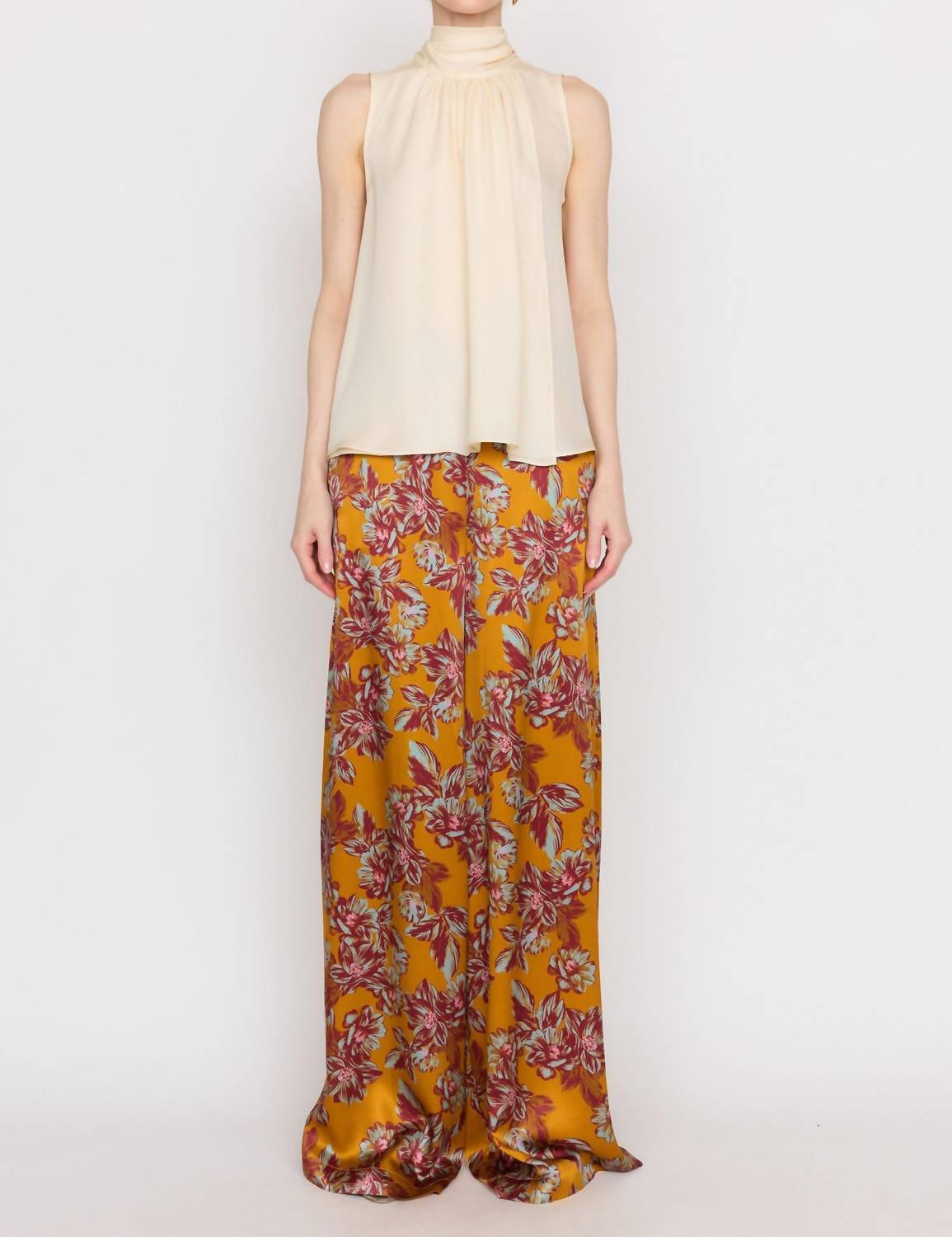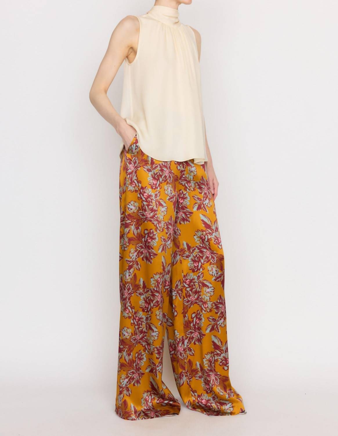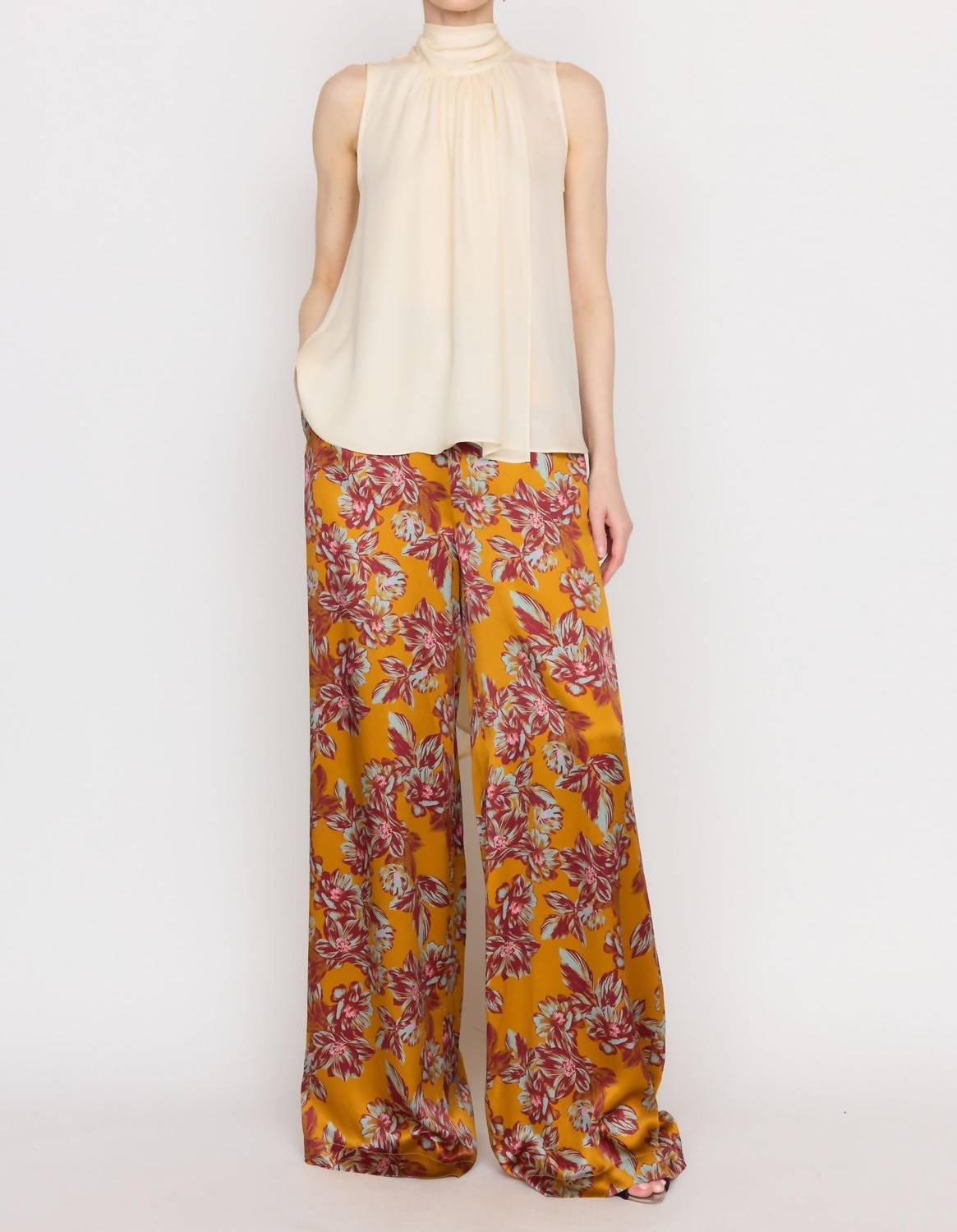 Experience elegance with the Marta Pants by Christy Lynn in a stunning cosmos hue, perfect for a boho chic appeal. Designed for women, these wide-leg pants offer a flattering drape to the floor thanks to their luxurious silk satin composition. Featuring an elasticated back for easy dressing, a flat front, and an invisible side zipper, these pants are both stylish and practical. Imported with side seam pockets, they require dry cleaning to maintain their vibrant pattern.