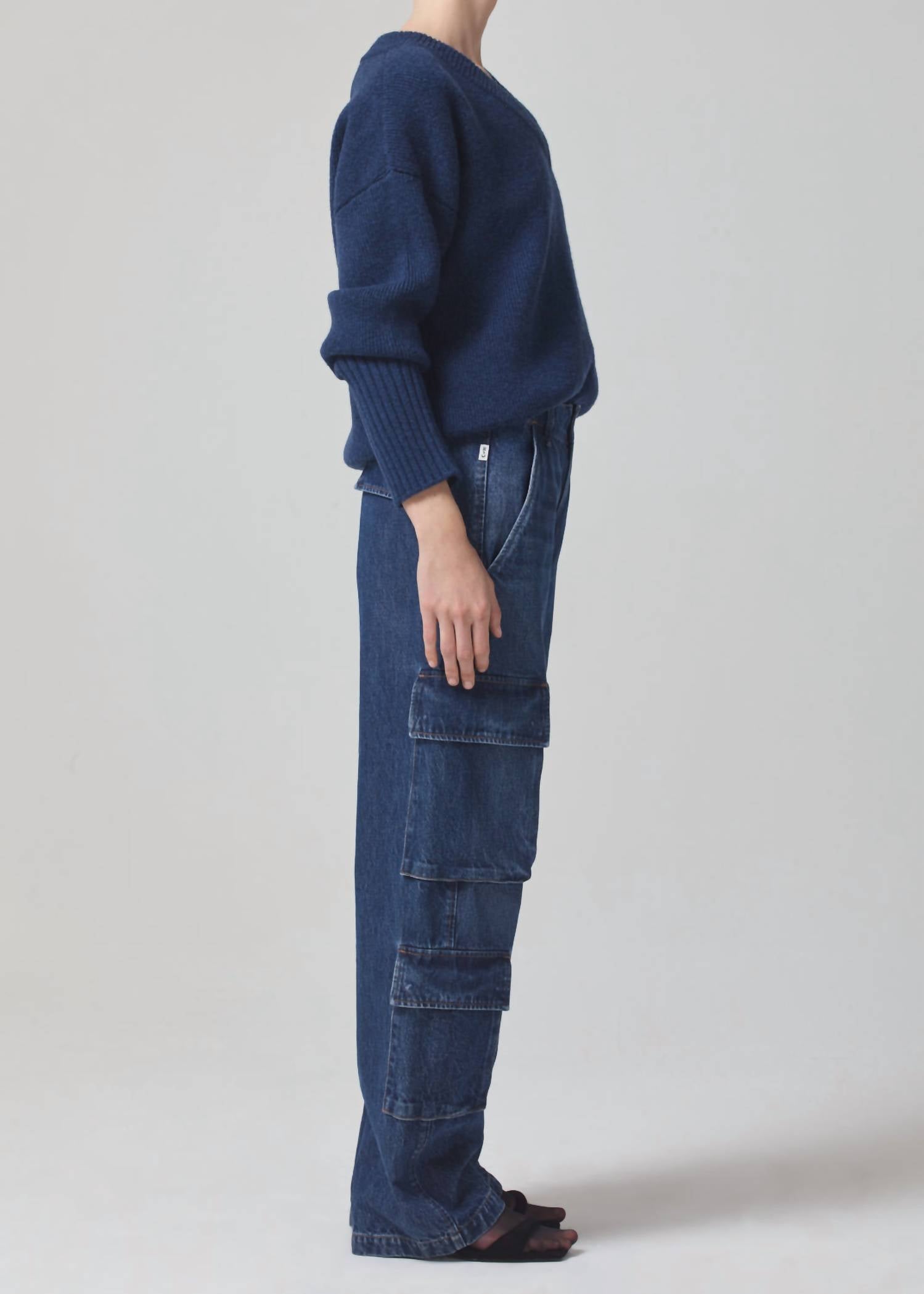 Descubra a Calça Cargo Jeans Delena da Citizens of Humanity, uma escolha chique e despojada para mulheres que buscam um caimento relaxado com um toque streetwear. Esta calça cargo de perna larga é confeccionada com uma mistura de algodão sustentável, com 67% algodão orgânico, 22% liocel reciclado e 11% algodão pós-reciclado, o que a torna ecologicamente correta e estilosa. Com cós alto de 30 cm e costura interna de 76 cm, oferece ampla cobertura e conforto. Feita nos EUA com materiais importados, possui um prático fecho de zíper e bolsos utilitários, perfeita para aventuras de verão. Instruções de cuidado: Lavar à máquina com água fria, do avesso, com cores semelhantes e secar em temperatura baixa. A modelo tem 1,78 m e veste tamanho 27.