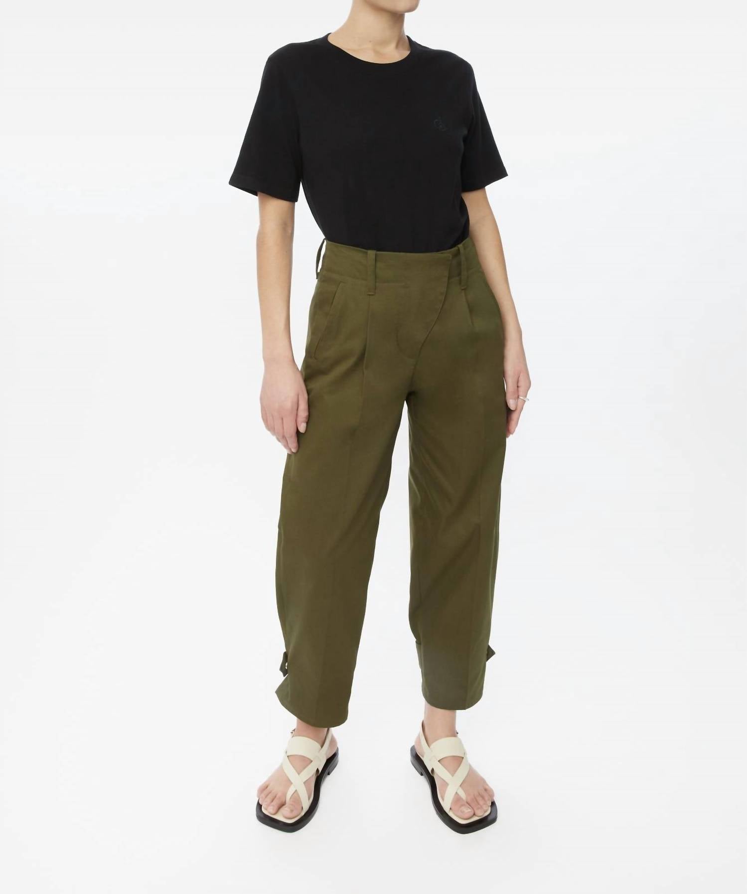 Uma calça reta que combina com todas as estações. Combine-a com sua blusa favorita ou use-a casualmente com sua camiseta favorita. Abrace o estilo e o conforto com a Calça Cônica Canvas Utility da Dāl the Label, disponível em um tom oliva moderno. Com cós alto e fecho de colchete, esta calça é confeccionada em sarja de algodão resistente. Com perna afunilada e bolsos funcionais, ela traz um toque minimalista ao seu guarda-roupa de primavera, perfeita para o Dia de Ação de Graças ou férias. As instruções de cuidado recomendam lavar à mão e secar na máquina para maior durabilidade.