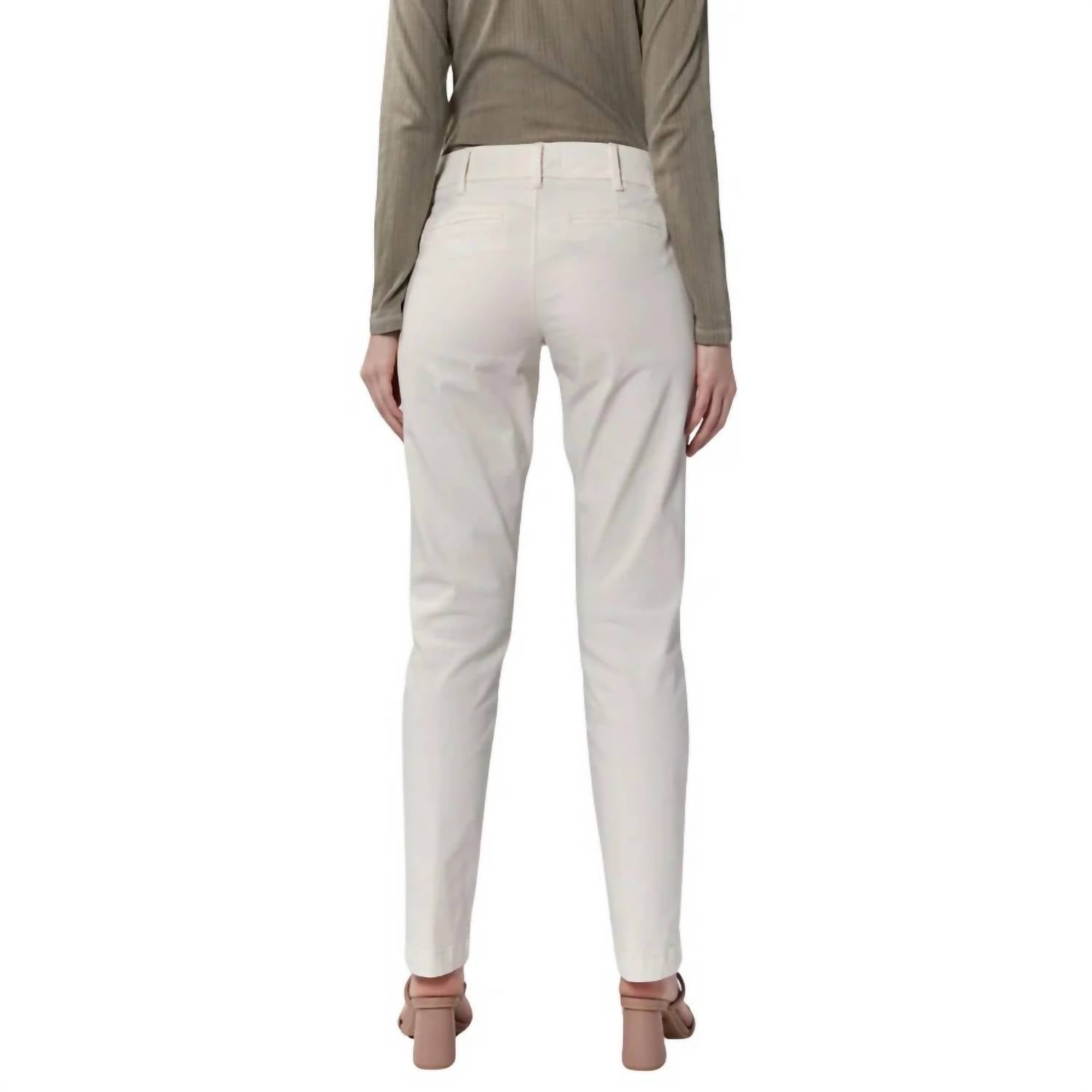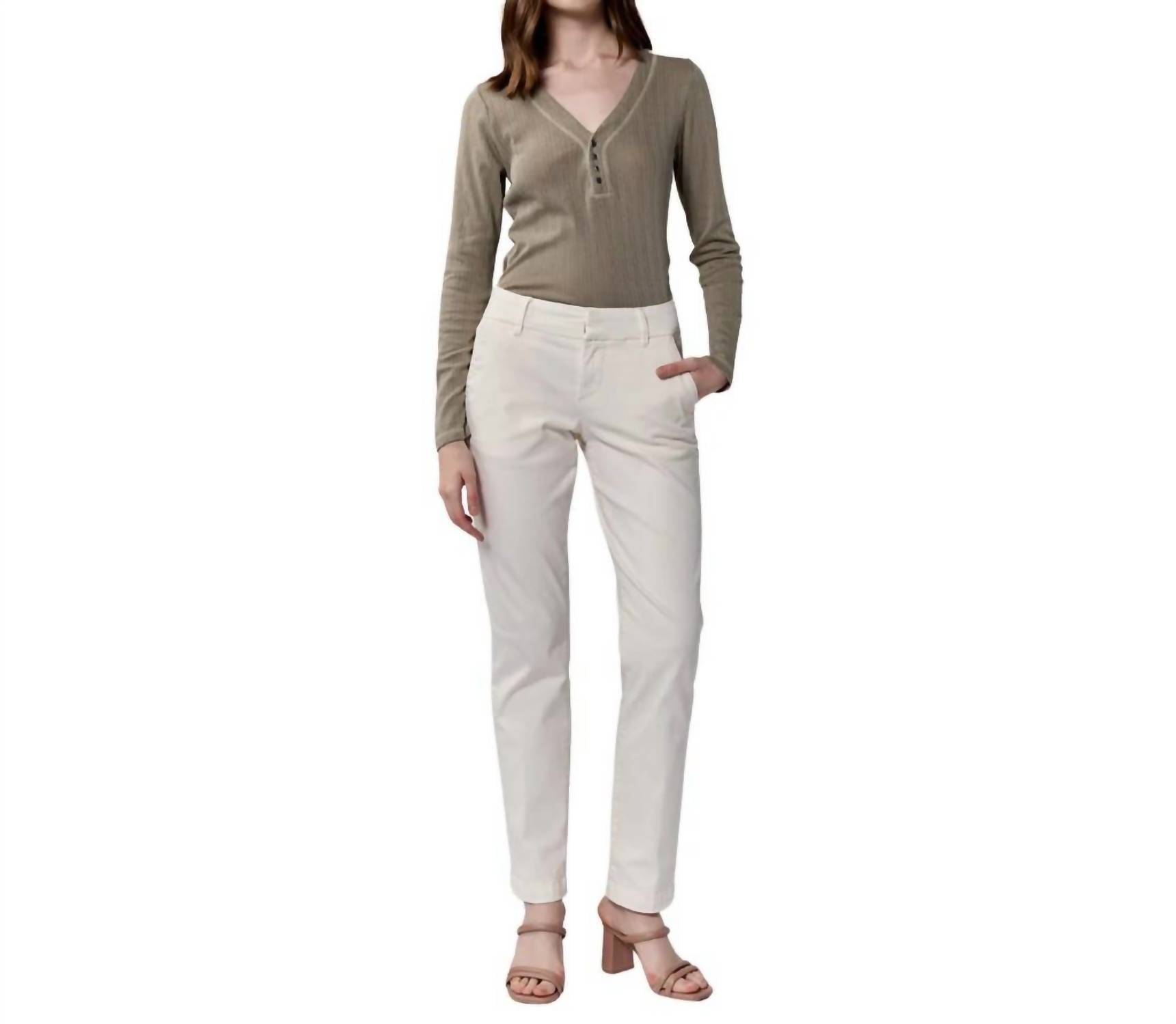 A perfectly tailored straight leg that you'll want in every color! The Hampton Pant by DEAR JOHN DENIM offers a sleek and stylish fit in a minimalist ivory hue, perfect for a spring dinner party. Made from a comfortable cotton blend of 88% cotton, 9% polyester, and 3% spandex, these straight leg chinos feature a clean hem design with a mid-rise and a front rise of 9.5 inches. The pant includes a button closure and practical pockets for added functionality. With a 30-inch inseam, caring for these pants is a breeze—simply machine wash and tumble dry.