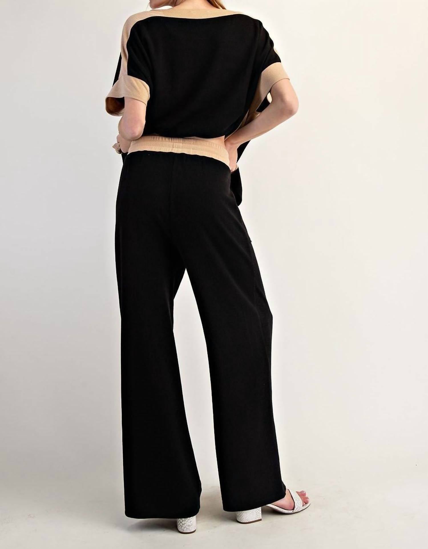 Meet the Contrast Waist Straight Leg Pants by ee:some, your go-to for a relaxed, lounge-ready style in timeless 90s fashion. Featuring a comfortable pull-on closure, these pants are crafted from a textured ribbed knit with 95% Polyester and 5% Spandex for easy movement. The straight leg design is complemented by an adjustable drawstring waistband with contrast trim, and two oversized front patch pockets add functionality. Ideal for vacation or casual Thanksgiving gatherings, these women's mid-rise pants effortlessly blend comfort and trend.