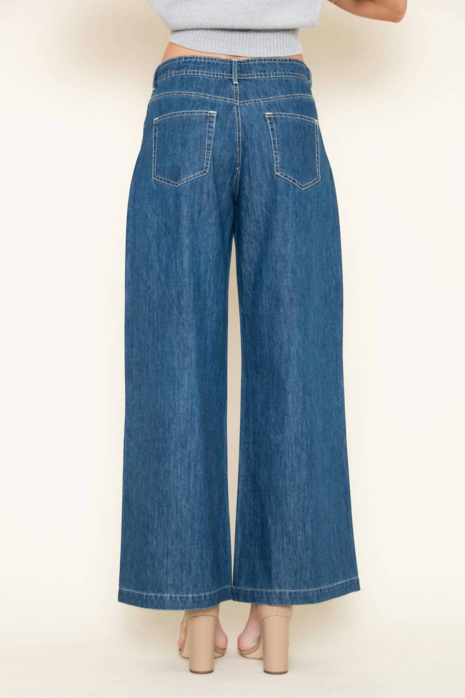 Discover stylish ease with the Drawstring Waist Wide Leg Pants by Fore Collection, crafted from premium denim in a rich dark wash. These women's pants feature a relaxed fit and mid-rise waist, effortlessly combining comfort with a touch of 90s-inspired sophistication. With their wide-leg silhouette and secure tie closure, these pants are perfect for both casual outings and dressed-up occasions. Complete with practical pockets, they make an ideal addition to your summer vacation wardrobe.