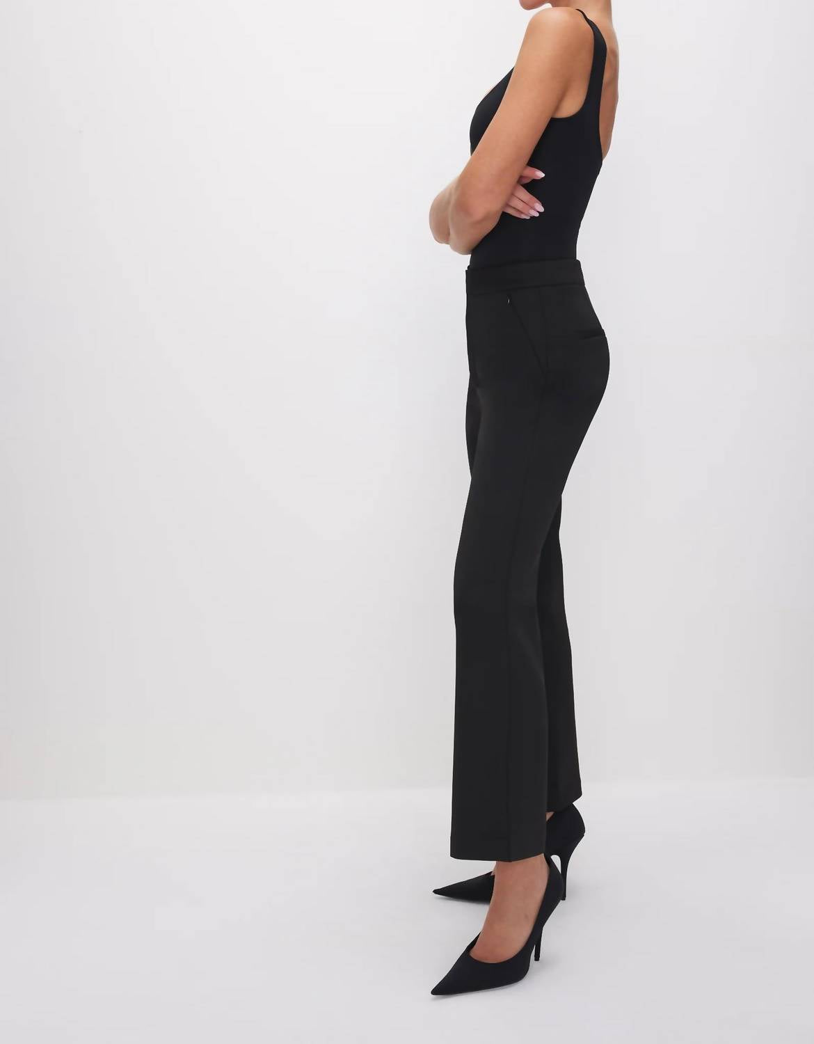 Eleve seu guarda-roupa com a Calça Cropped Reta Scuba da GOOD AMERICAN, confeccionada em um tom preto clássico. Esta calça oferece cós alto e pernas retas, proporcionando estilo chique e conforto o dia todo. Confeccionada em 92% poliéster e 8% elastano, possui fecho frontal com zíper e bolsos laterais para maior praticidade. Com 71 cm de costura interna, é perfeita para um look cropped elegante. Cuidados: Lavar a seco ou à mão.