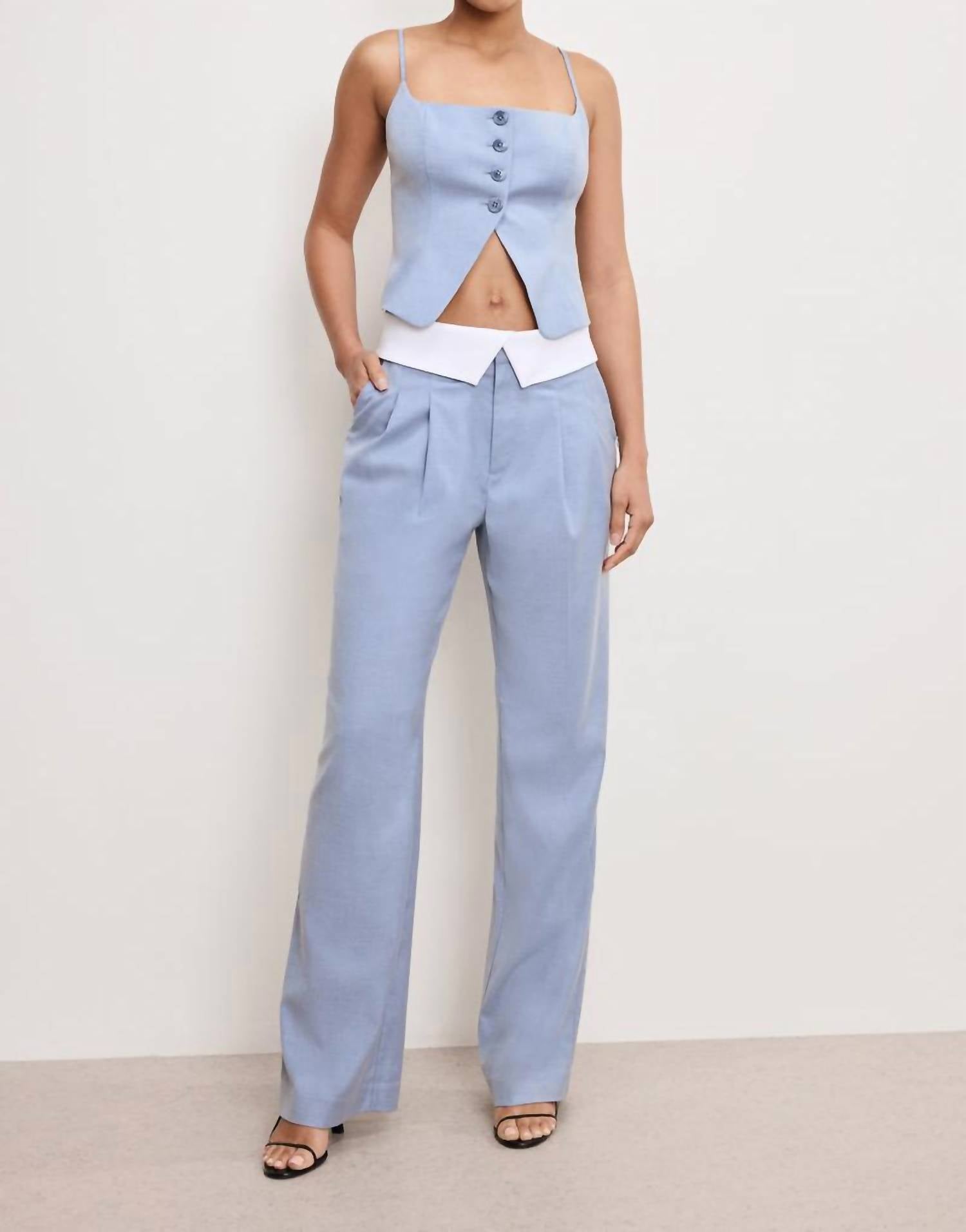 Apresentamos a Calça Dobrável Twill Suiting da Good American, habilmente confeccionada para aliar conforto e sofisticação. Esta calça feminina na cor Crosshatch Blue apresenta cós dobrável de cintura média e perna larga, garantindo um caimento perfeito para qualquer ambiente profissional. Confeccionada em jeans premium com estampa lisa e lavagem média, ela conta com bolsos e um prático fecho de zíper. Com 67 cm de comprimento, esta calça é perfeita para adicionar elegância ao seu traje de trabalho durante a primavera.