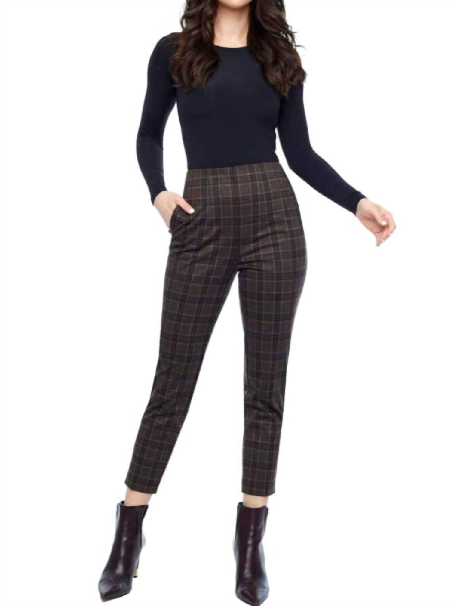 Apresentamos a Calça Xadrez Gigi Carlow da I Love Tyler Madison, uma mistura estilosa de conforto e sofisticação, ideal para o guarda-roupa moderno. Esta calça comprida feminina apresenta um corte relaxado com cós elástico ajustável, garantindo praticidade e estilo. Confeccionada no Canadá em poliéster de alta qualidade, apresenta um design xadrez com cintura alta e pregas ajustadas nas pernas. Cuidados: Lavar à máquina. Com 66 cm de costura interna, esta calça é perfeita para combinar com seus tops e jaquetas favoritos em qualquer ocasião.