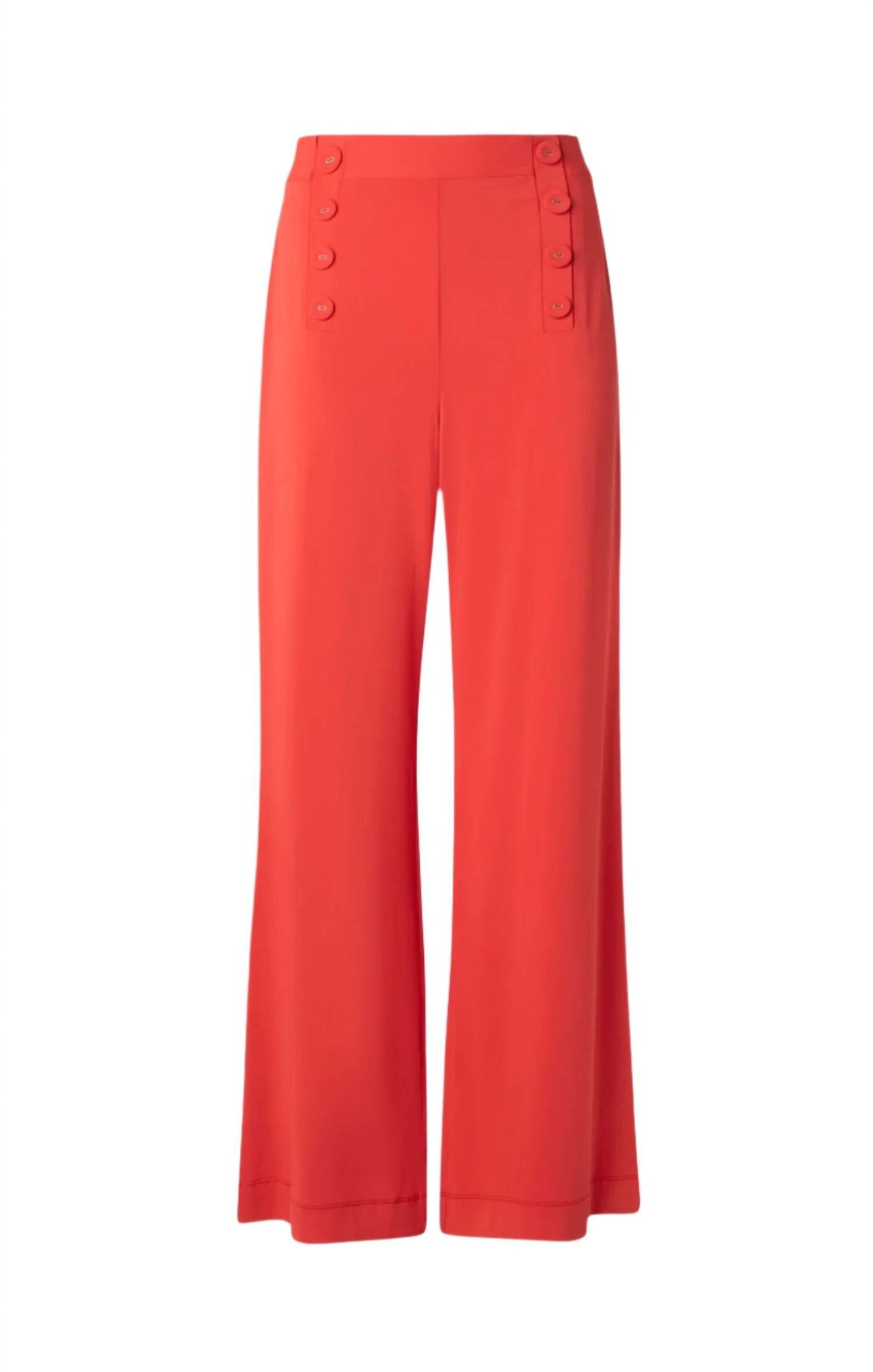 Embrace comfort and style with the Wide Leg Sailor Pants by Iris Setlakwe, crafted from classic matte jersey fabric. These black, wide-leg trousers feature a relaxed fit and eye-catching gold button detail, perfect for a chic night out or a sophisticated dinner party. Composition: 76% Acrylic, 20% Polyamide, 4% Elastane. Made with imported Italian fabric, they are machine washable for effortless care. Origin: Canada. Closure: Zip closure.