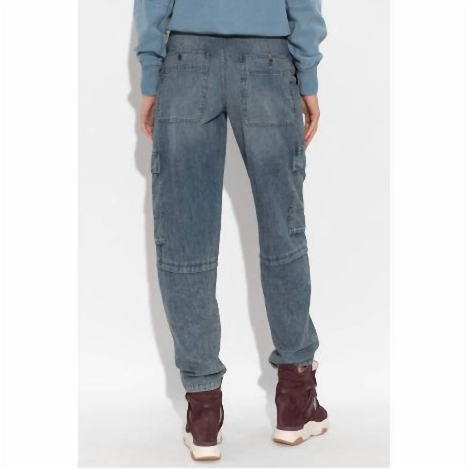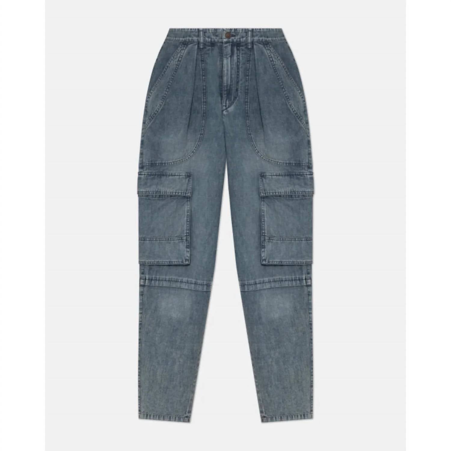A straightleg pant that workes season after season. Dress these up with your favorite blouse or keep it casual with your go-to tee. Blends a feminine tapered fit with utilitarian accents for a stylish edge. Constructed from heavyweight 100% cotton denim in a faded blue. Boast a relaxed fit with a mid-to-high rise and tapered leg style. Designed with both cargo and front & back pockets. Features a solid pattern with a medium wash that exudes a streetwear vibe perfect for travel occasions. Closure is a button type. Care instructions advise machine wash and tumble dry for easy maintenance.