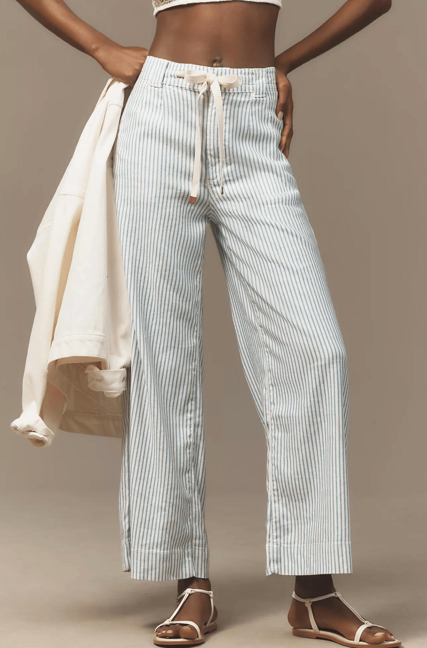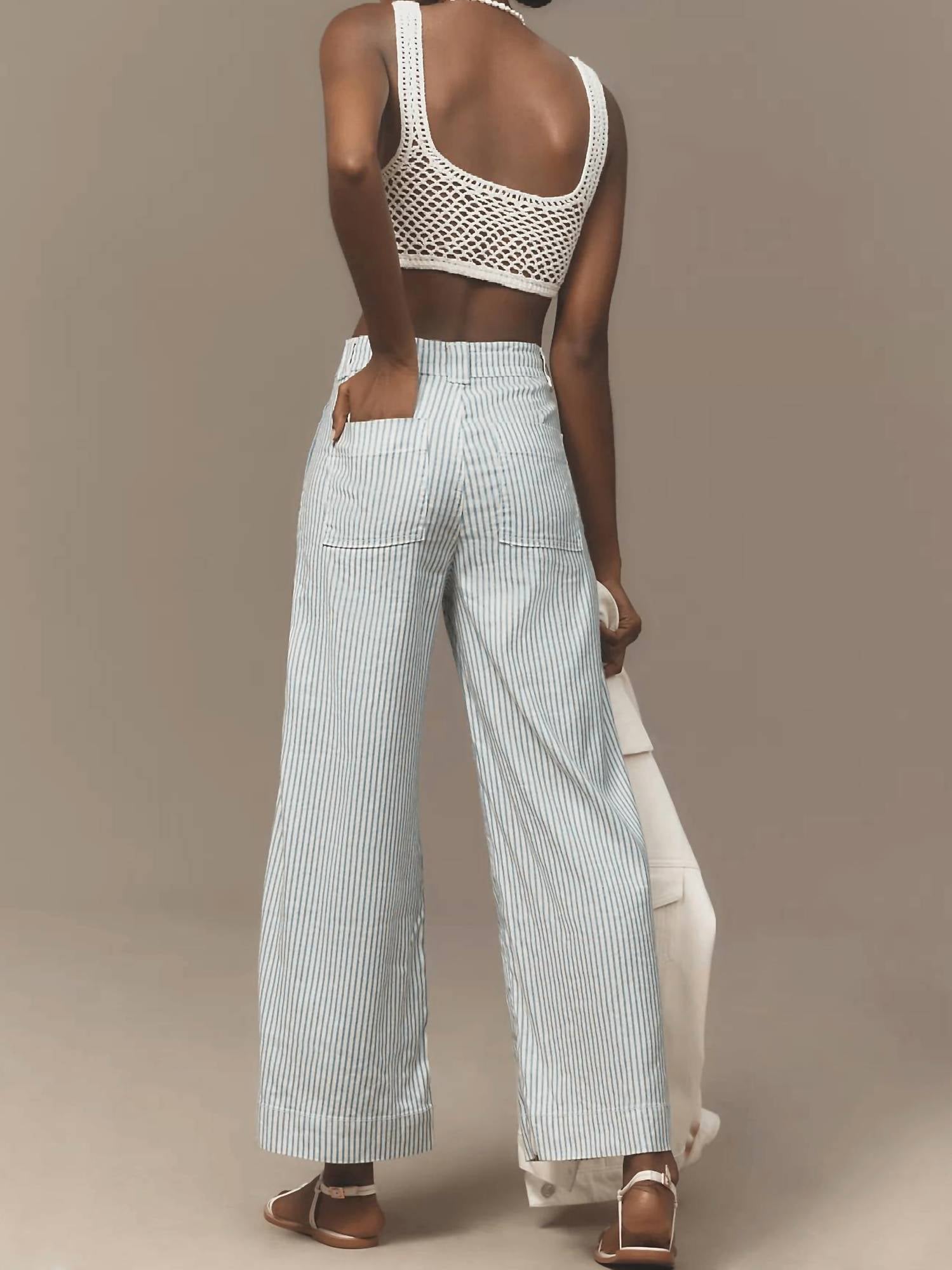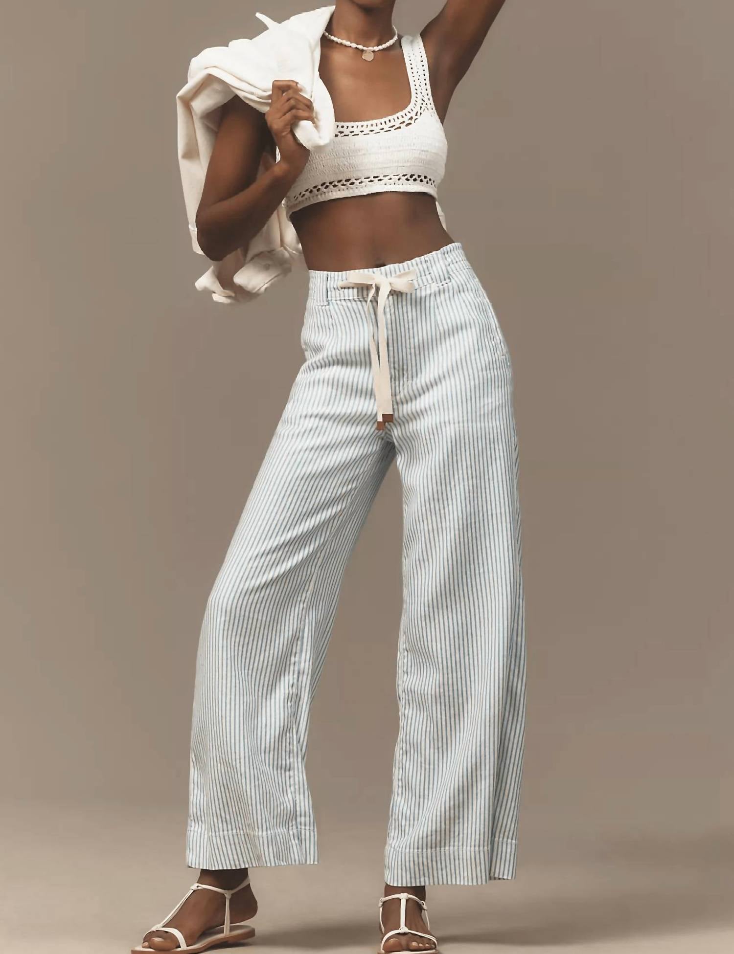 A Calça Larga Addison da Joe's Jeans na cor Rail Road Stripe é uma escolha estilosa para qualquer guarda-roupa. Confeccionada com uma mistura de linho, lyocell e elastano, esta calça com corte palazzo e comprimento até o tornozelo apresenta um caimento relaxado e cintura alta. Com cós prático com amarração e bolsos embutidos, ela oferece estilo e funcionalidade sem esforço. Feita com zíper frontal, esta calça importada tem 28 cm de altura, 68 cm de costura interna e 63 cm de abertura nas pernas, e é lavável à máquina.