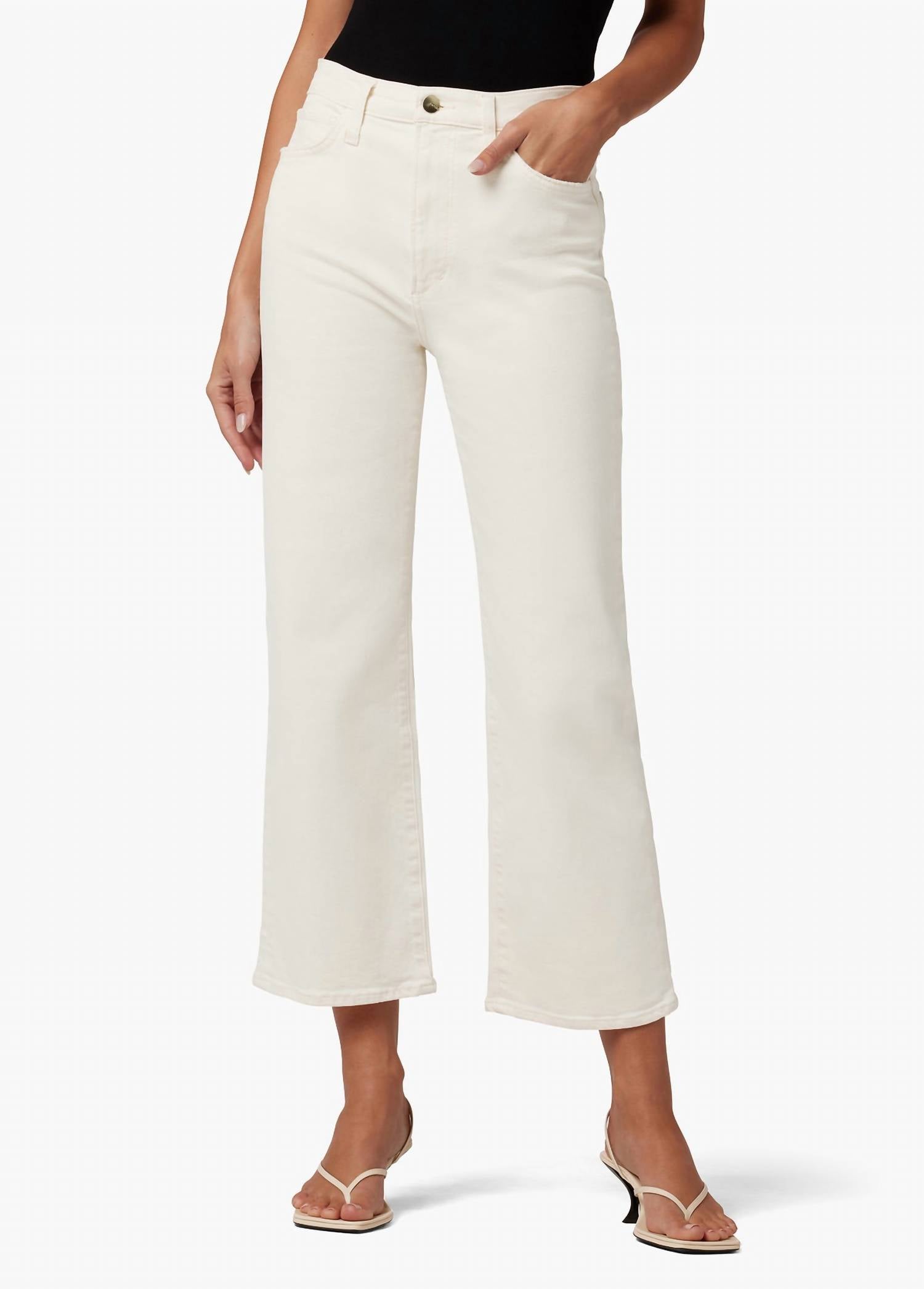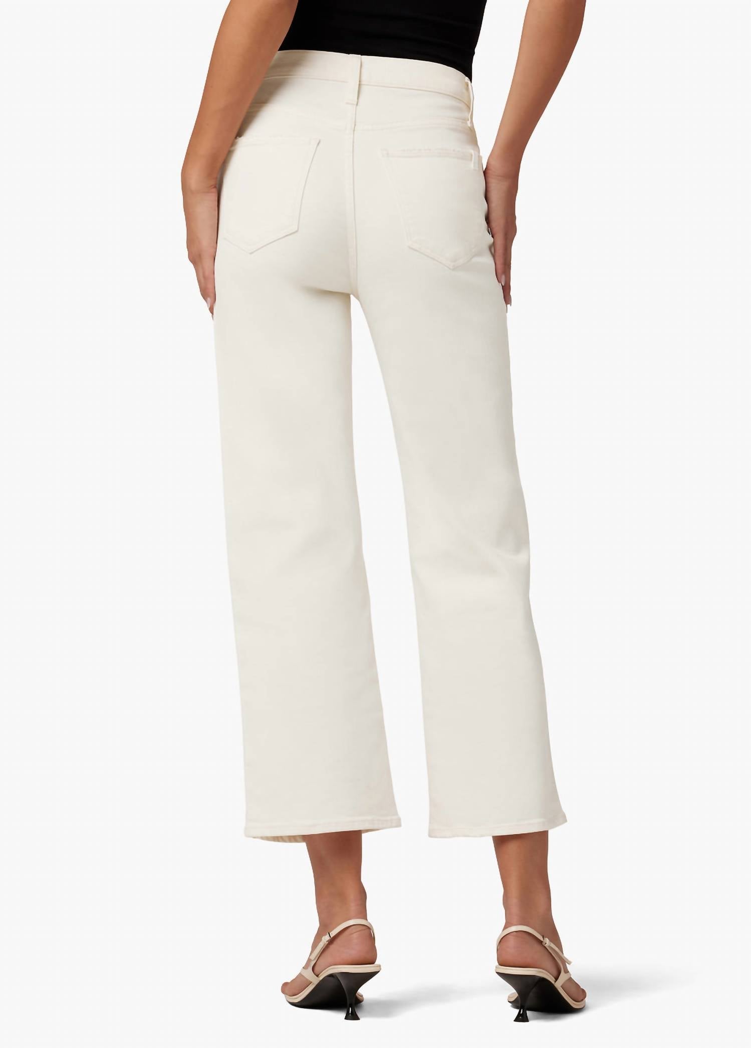 Calça jeans cropped de perna larga, cintura alta e estilo clássico de cinco bolsos. Altura do cós: 28 cm. Entrepernas: 66 cm. Modelo veste tamanho 66 cm. Lavar à máquina com água fria. 71% algodão, 27% liocel, 2% elastano.