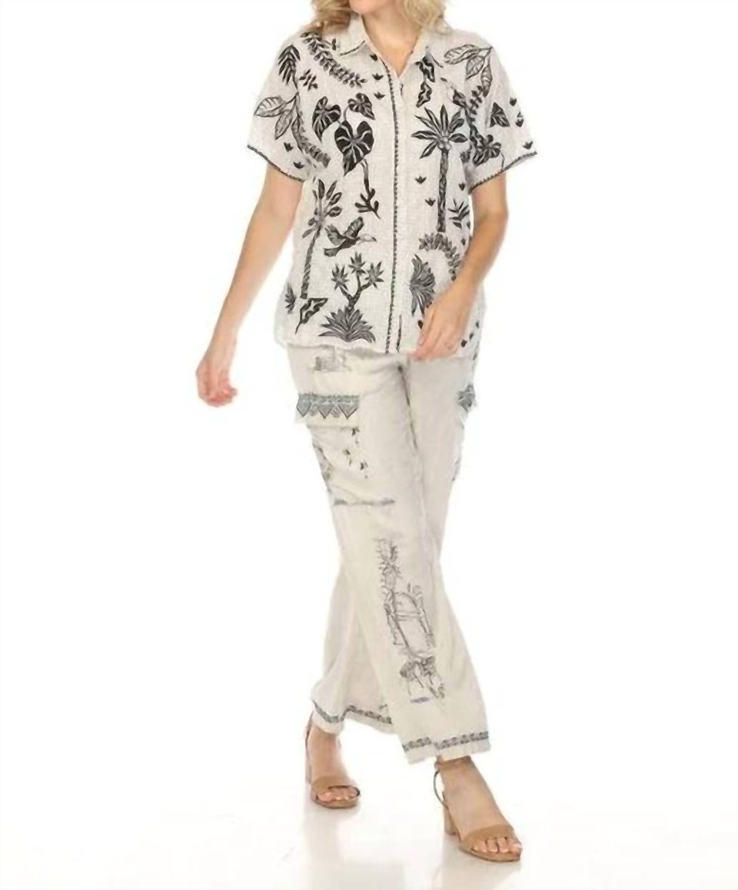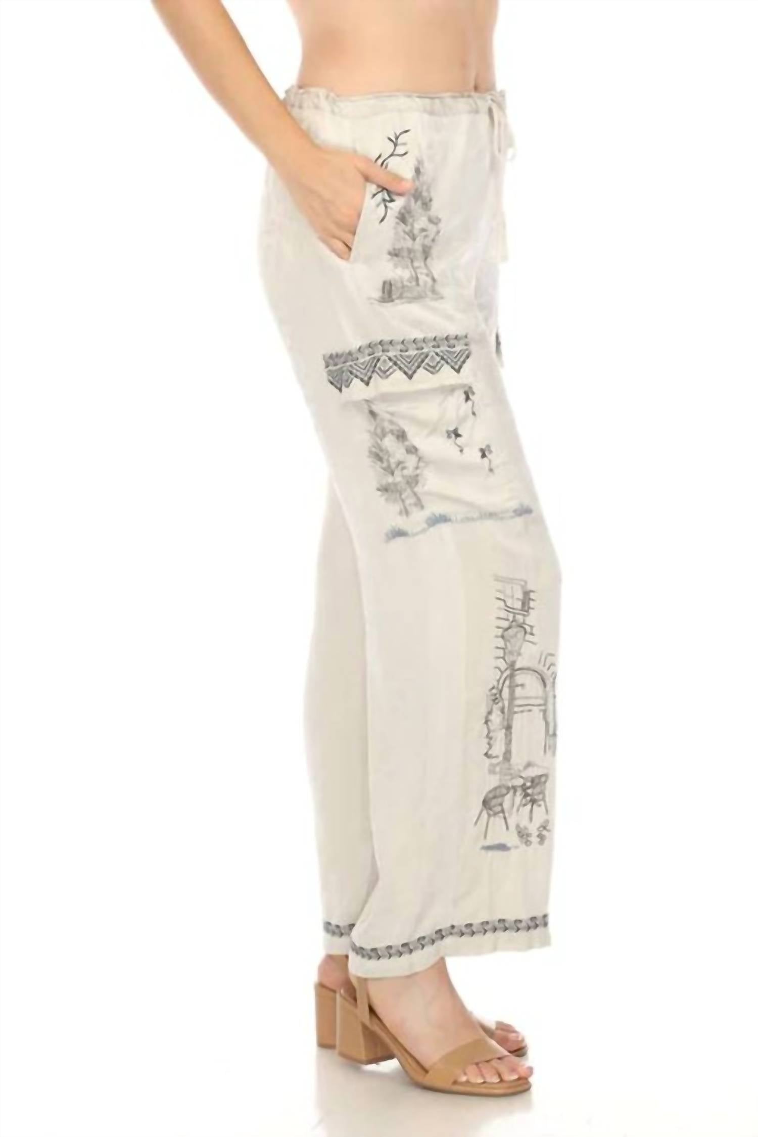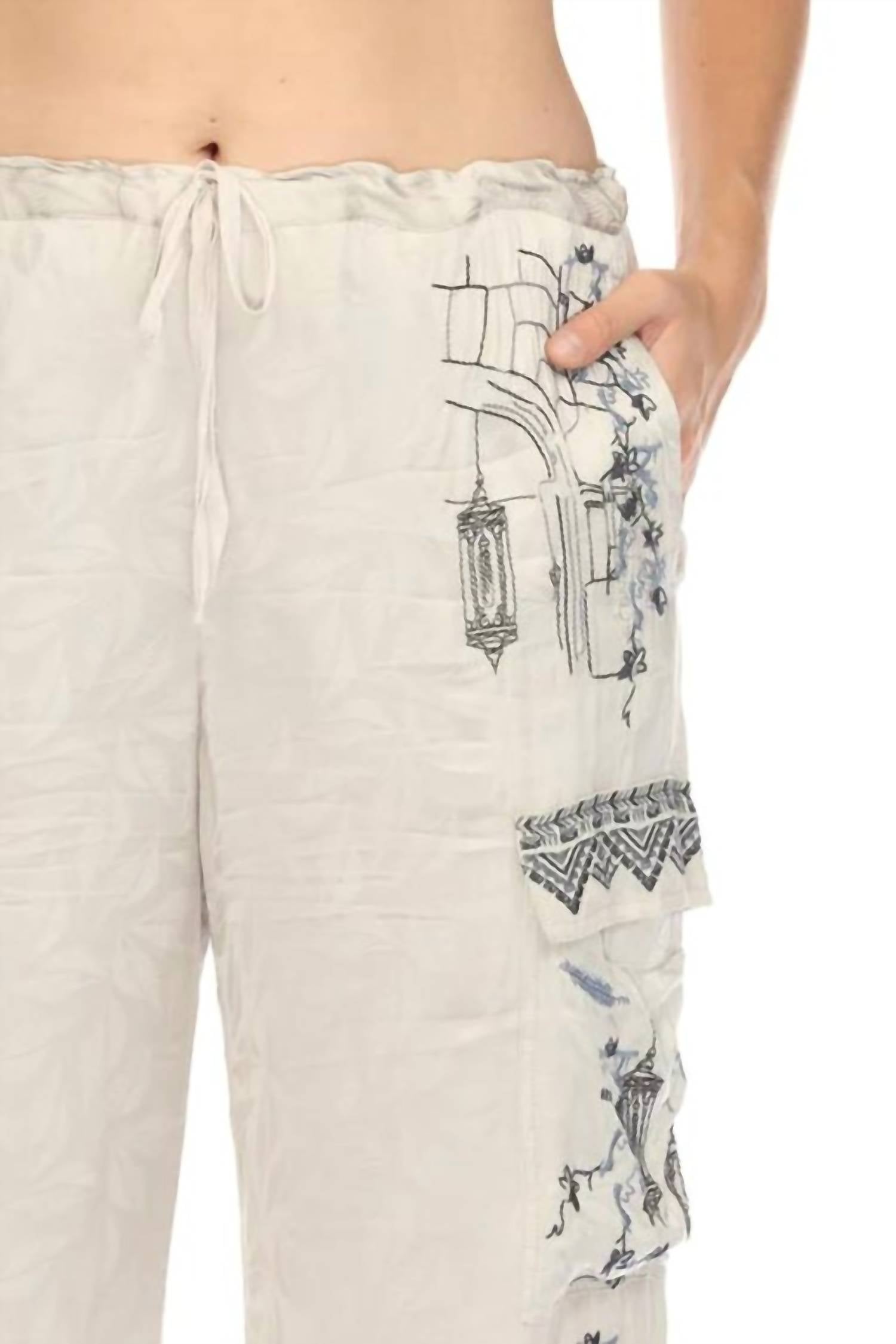 Estas calças estilosas e confortáveis se tornarão rapidamente a sua peça favorita para todas as ocasiões. Confeccionadas em tecido respirável, estas calças cargo são confeccionadas em cor sólida e apresentam bordados contrastantes. Elas têm um estilo pull-on com cordão na cintura, quatro bolsos e pernas largas para maior conforto. Lavável à máquina.
