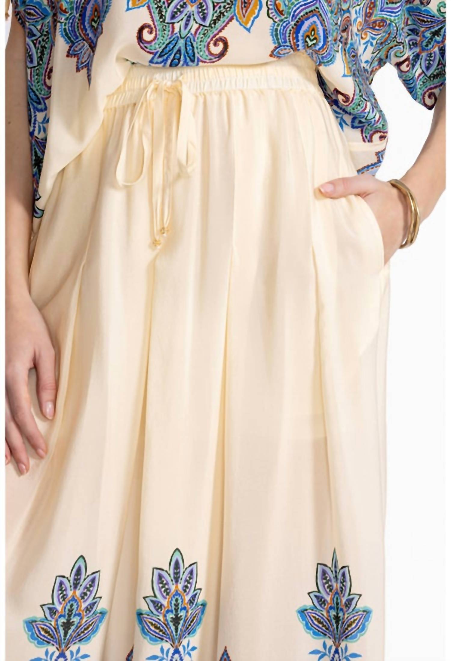 Johnny Was - CALÇA PLISSADA DE PERNA LARGA