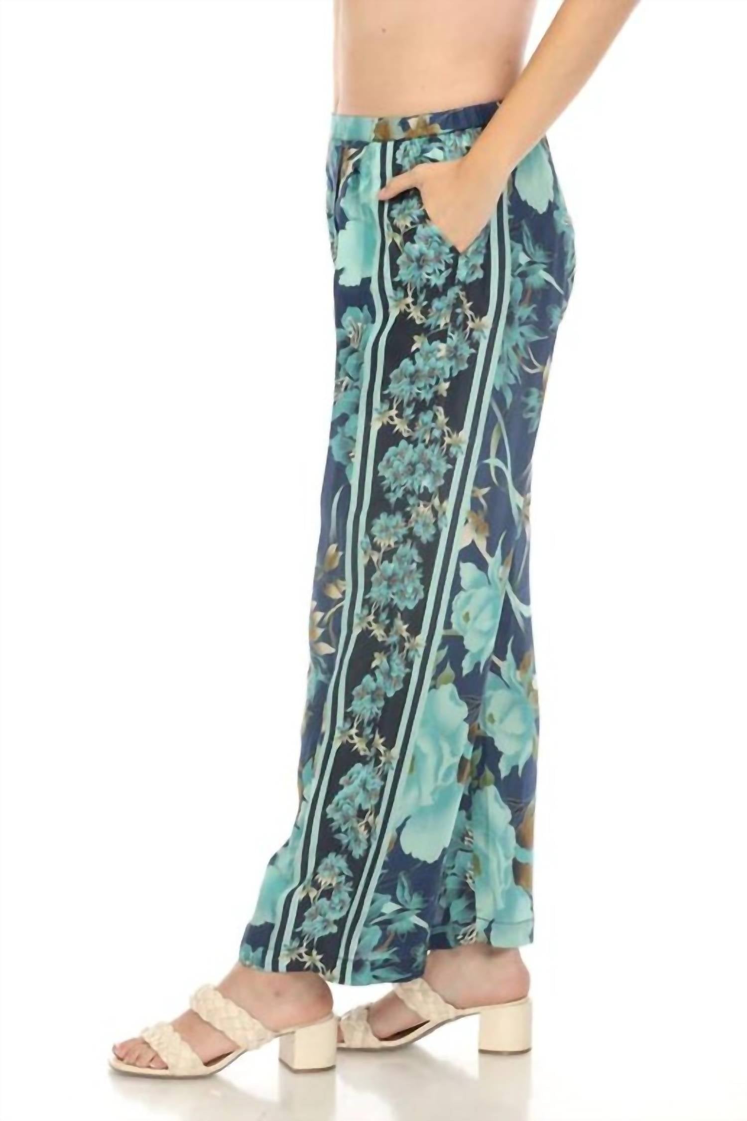 As Calças Plissadas Terri são a personificação perfeita do chique sem esforço, combinando aconchego e estilo. Garanta que seu guarda-roupa mostre o seu melhor com peças da Johnny Was. Estas calças são feitas de tecido leve, com pregas na frente e estampa floral com listras laterais. Elas também têm um estilo pull-on com cós elástico, bolsos laterais e pernas largas.