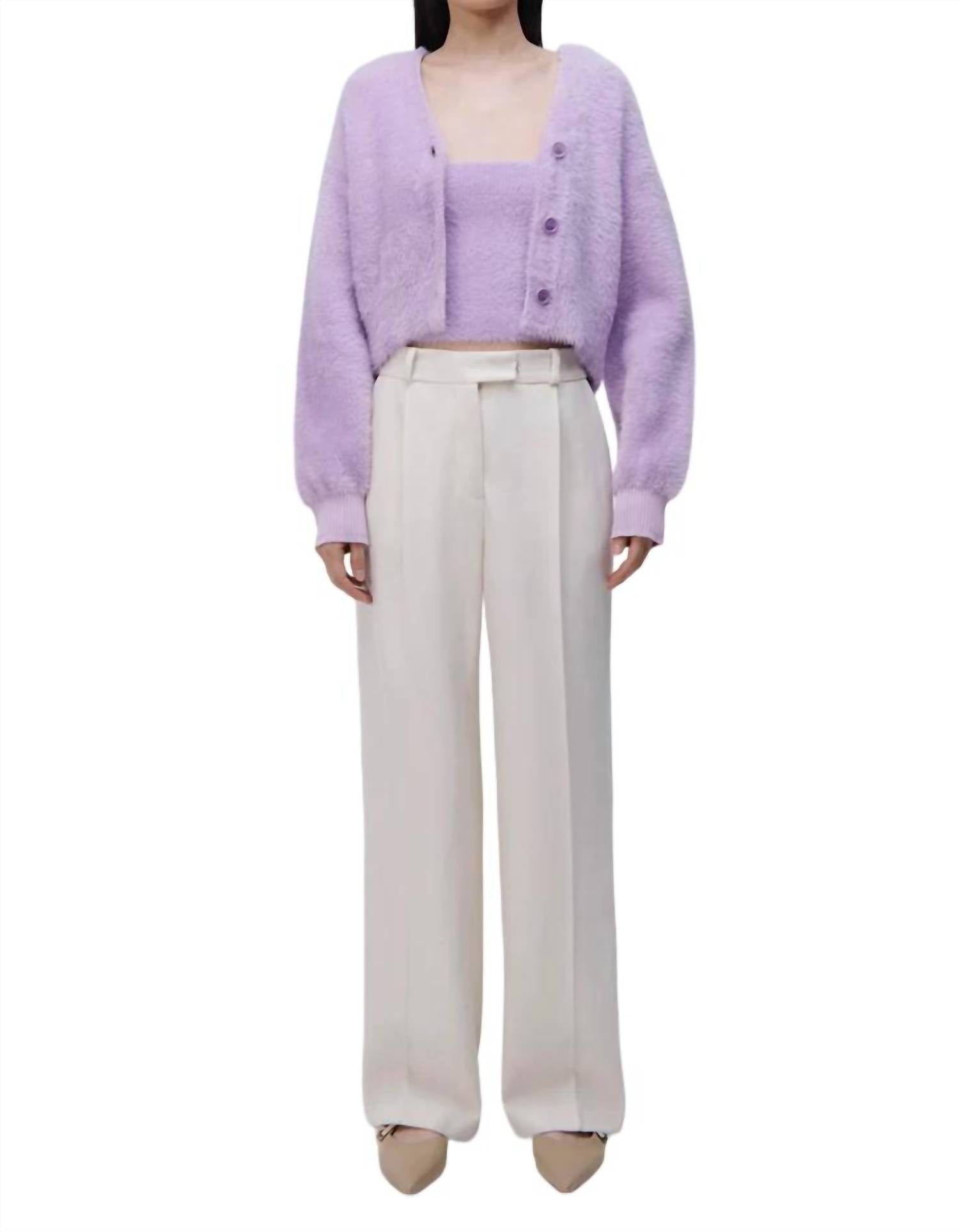 Design plissado e perna reta. Fechamento com zíper e botão. Materiais: 55% lã e 45% poliéster. Lavagem a seco somente. A modelo tem 1,78 m e veste tamanho 2.