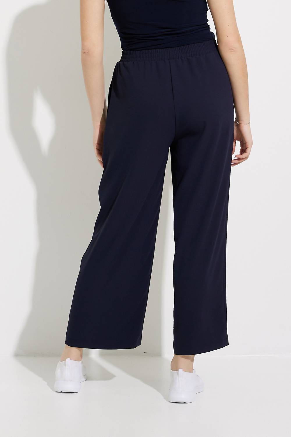 Mantenha-se na moda e exiba seu gosto impecável com estas calças cropped adaptáveis e estilosas. O comprimento perfeito para usar com suas mules favoritas. Você vai adorar o caimento! Eleve seu guarda-roupa de trabalho com a Calça com Cós Elástico da Joseph Ribkoff, confeccionada em Midnight para um estilo refinado. Esta calça de perna reta é feita de 100% poliéster e possui cós médio com tornozelo levemente cropped, tornando-a perfeita para o verão. Com cós elástico e bolsos laterais práticos, ela oferece conforto e praticidade. Fácil de cuidar, lavável à máquina, e observe que o comprimento aproximado da costura interna é de 71 cm para o tamanho 12. A modelo tem 1,75 m e veste tamanho 36.