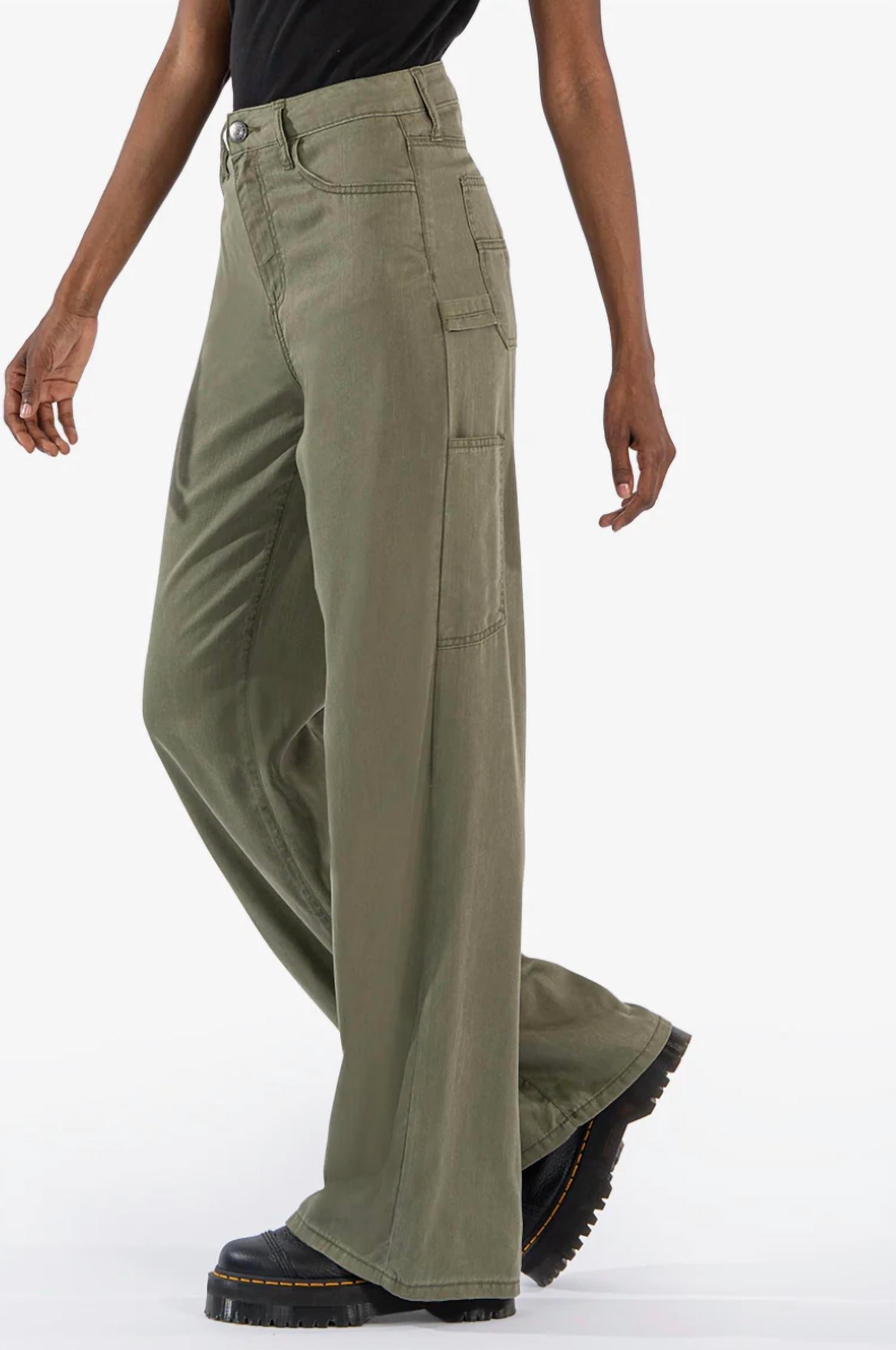 Eleve seu guarda-roupa com a Calça Sienna de Cintura Alta e Perna Larga da KUT FROM THE KLOTH, confeccionada em um elegante tom oliva. Esta calça possui um padrão texturizado e é feita de Lyocell, proporcionando um toque luxuosamente macio. Desenhada com um estilo de perna larga e bolsos práticos, ela apresenta cintura alta para um ajuste perfeito. Fechamento: Fechamento por botão. Cuidados: Lavável à máquina para fácil manutenção.