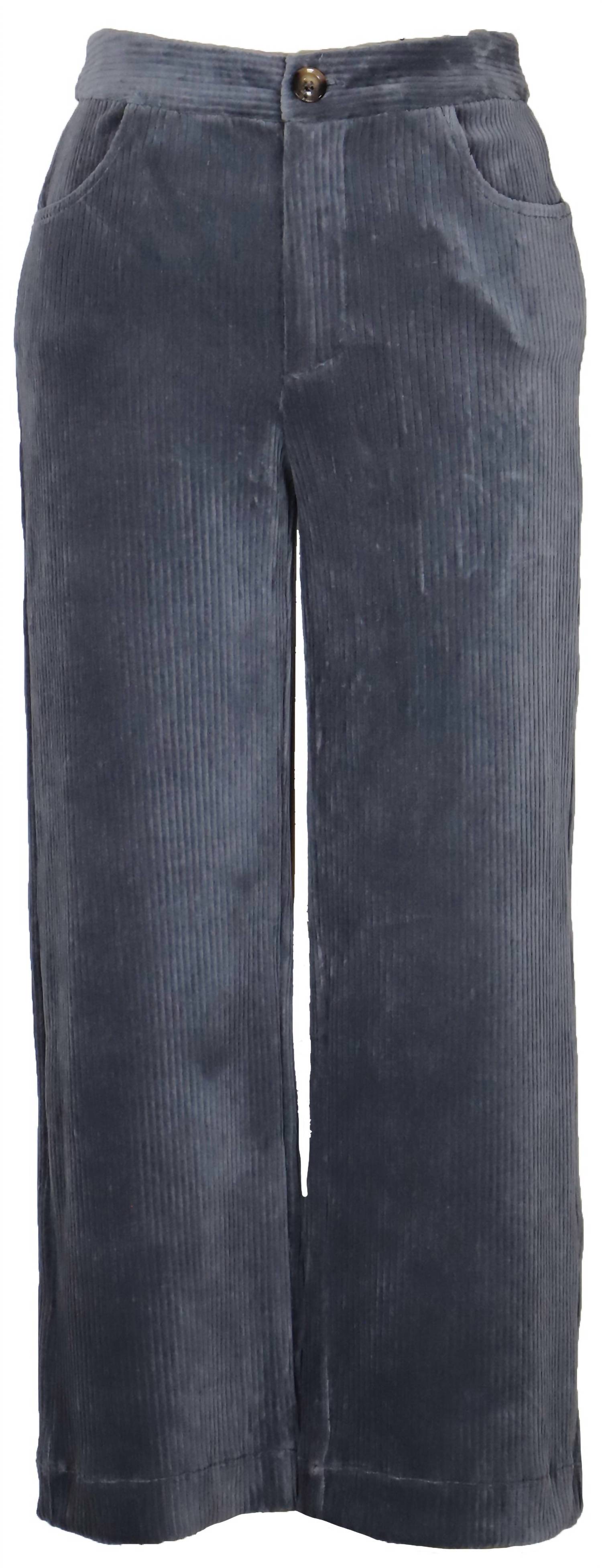 LUCY PARIS presents the Bruna Corduroy Trousers, a chic addition to any wardrobe in a sophisticated gray hue. These high-waisted, wide-leg trousers feature a relaxed fit with convenient front pockets, perfect for a stylish and utilitarian appeal. Made from a textured cotton blend of 61% Cotton, 36% Polyester, and 3% Spandex, these pants offer both comfort and durability. Closure: Zipper closure. Care: Dry clean only.