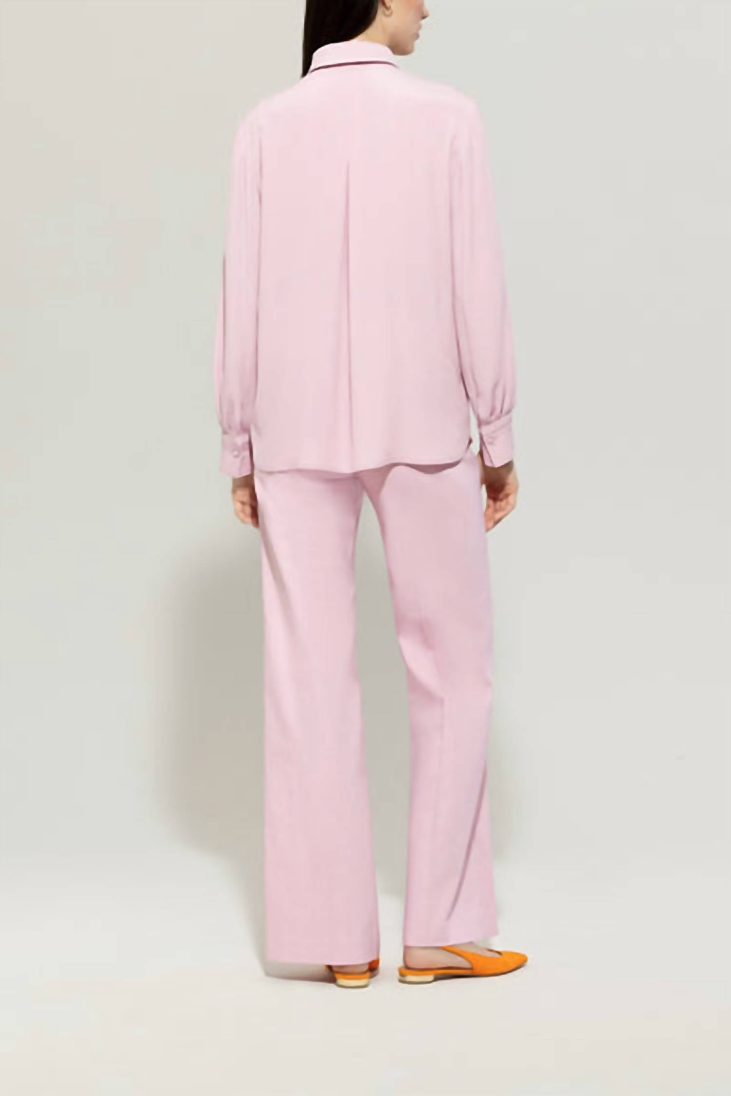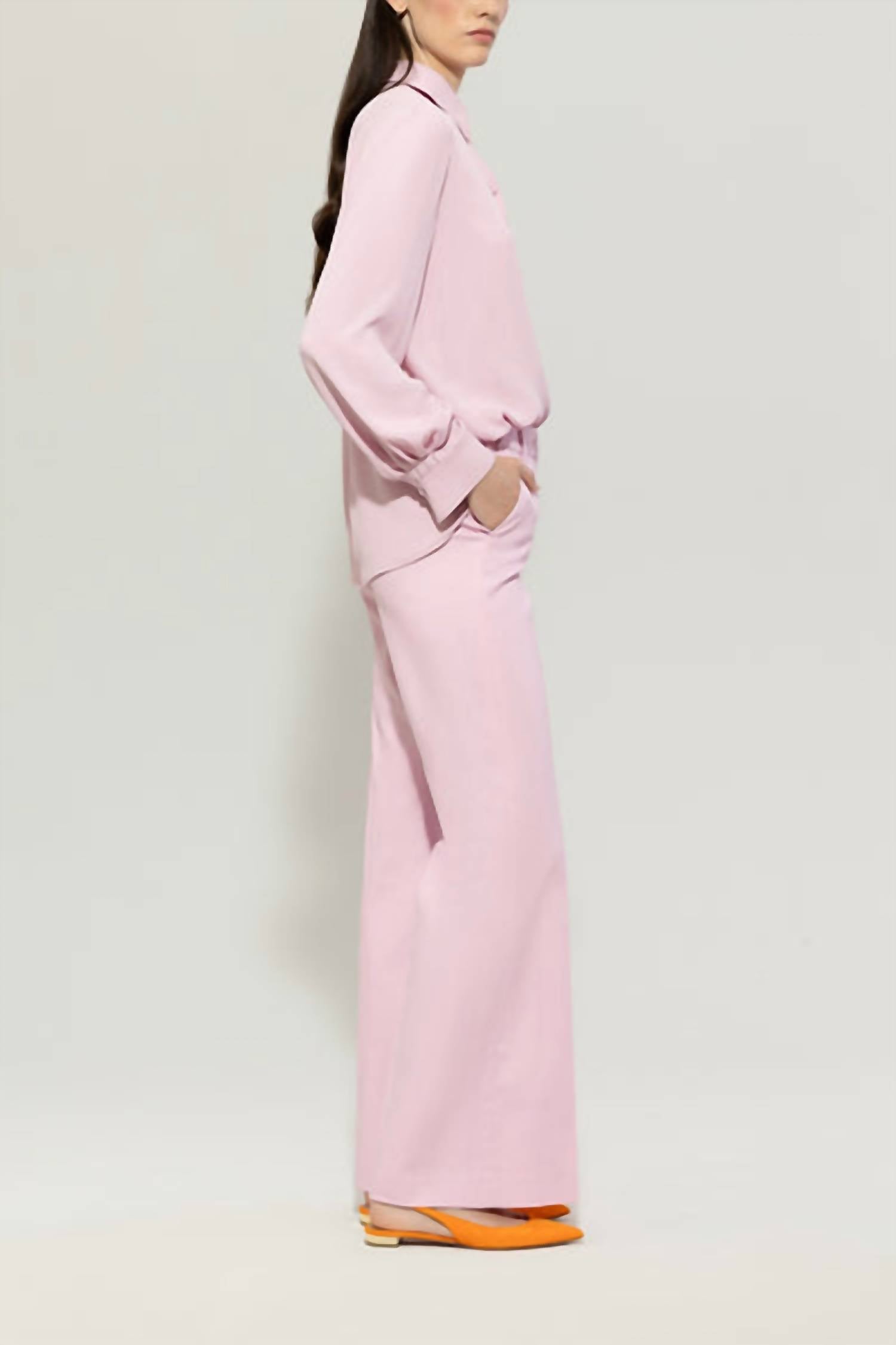 Embrace elegance with the LUISA CERANO Twill Bootleg Pants in Fresh Rose, designed for a relaxed fit and featuring a bootcut leg style. Crafted from a finely woven twill consisting of 60% cotton, 37% viscose, and 3% elastane, these trousers offer both comfort and sophistication. Practical elements include side slit and indicated back pockets with flaps, belt loops, and a concealed hook, button, and zipper fastening for a seamless look. To maintain their pristine condition, hand wash these pants. Our model, standing at 178 cm, wears a size 36.