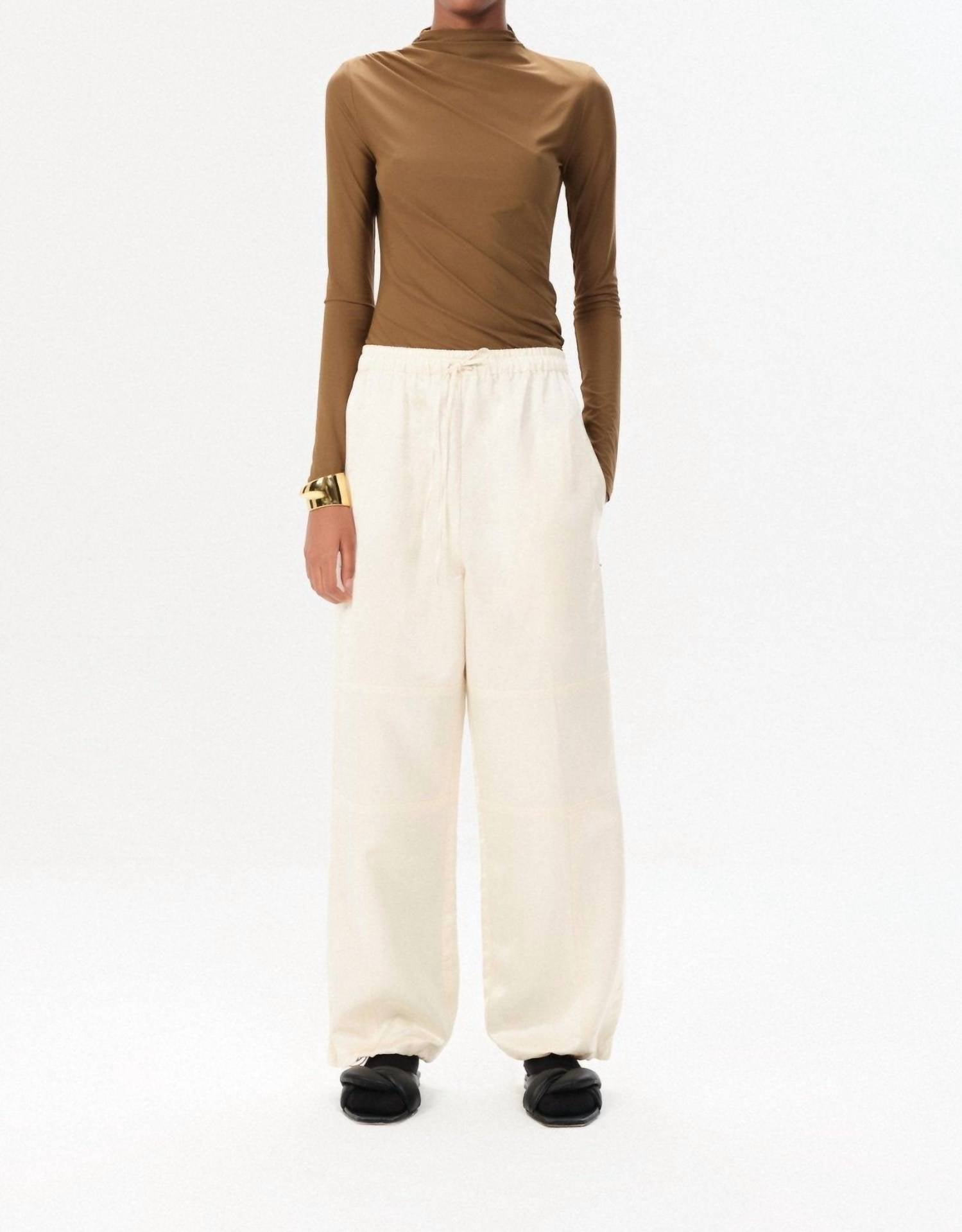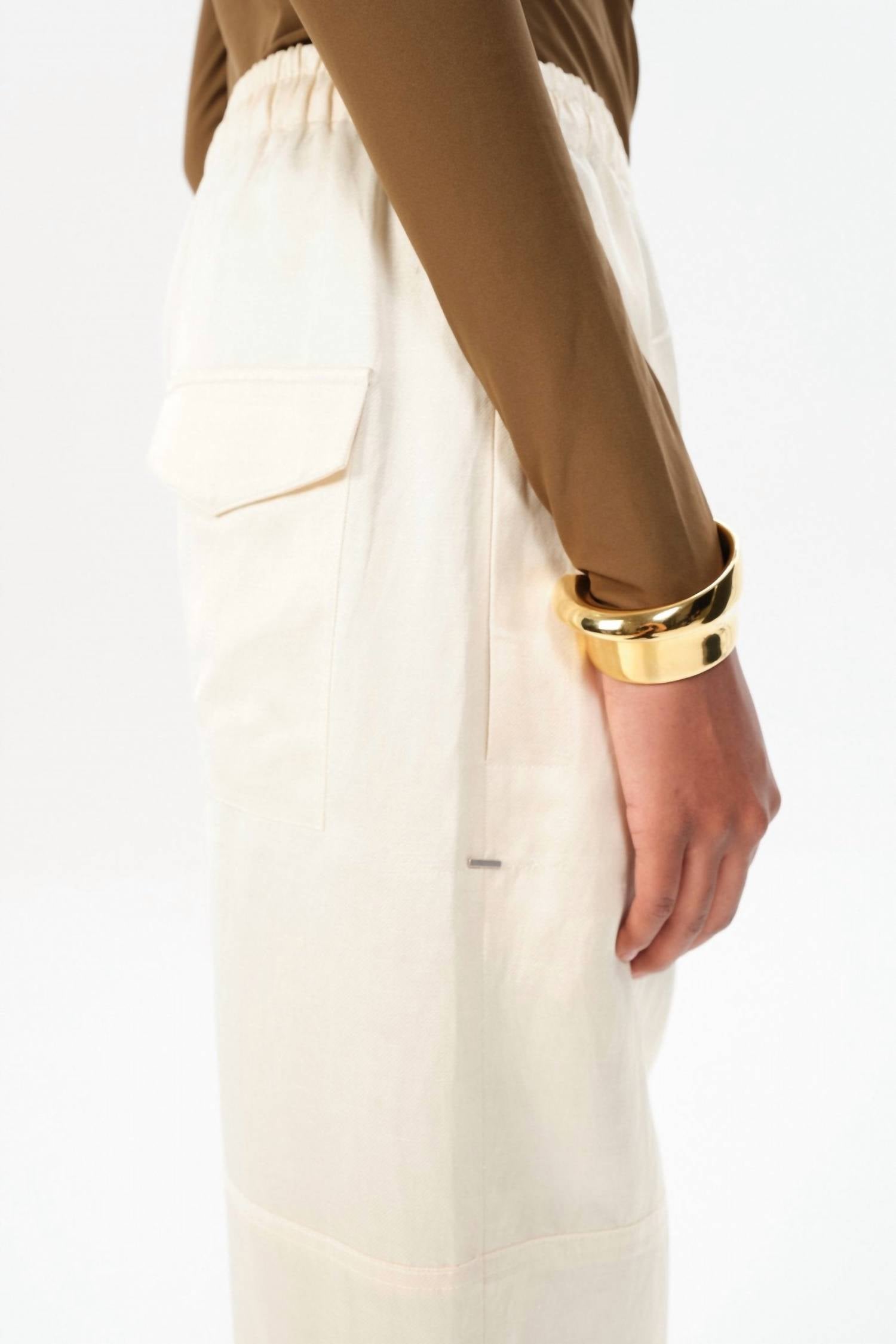 Uma calça reta que combina com todas as estações. Combine-a com sua blusa favorita ou use-a casualmente com sua camiseta favorita. Conheça a Calça Garin Halley da Maria Cher, uma adição estilosa ao seu guarda-roupa com seu caimento relaxado e cós alto em um elegante off-white. Esta calça reta possui um fecho pull-on confortável e uma estampa sólida versátil, tornando-a perfeita para viagens e uso diário. Confeccionada com uma mistura de 55% Viscose, 25% Algodão e 20% Sarja de Linho, ela oferece um toque macio e respirável. Cuidados: Lavar à mão em água fria, secar na horizontal e passar a ferro com cuidado, sem alvejante ou torcer.