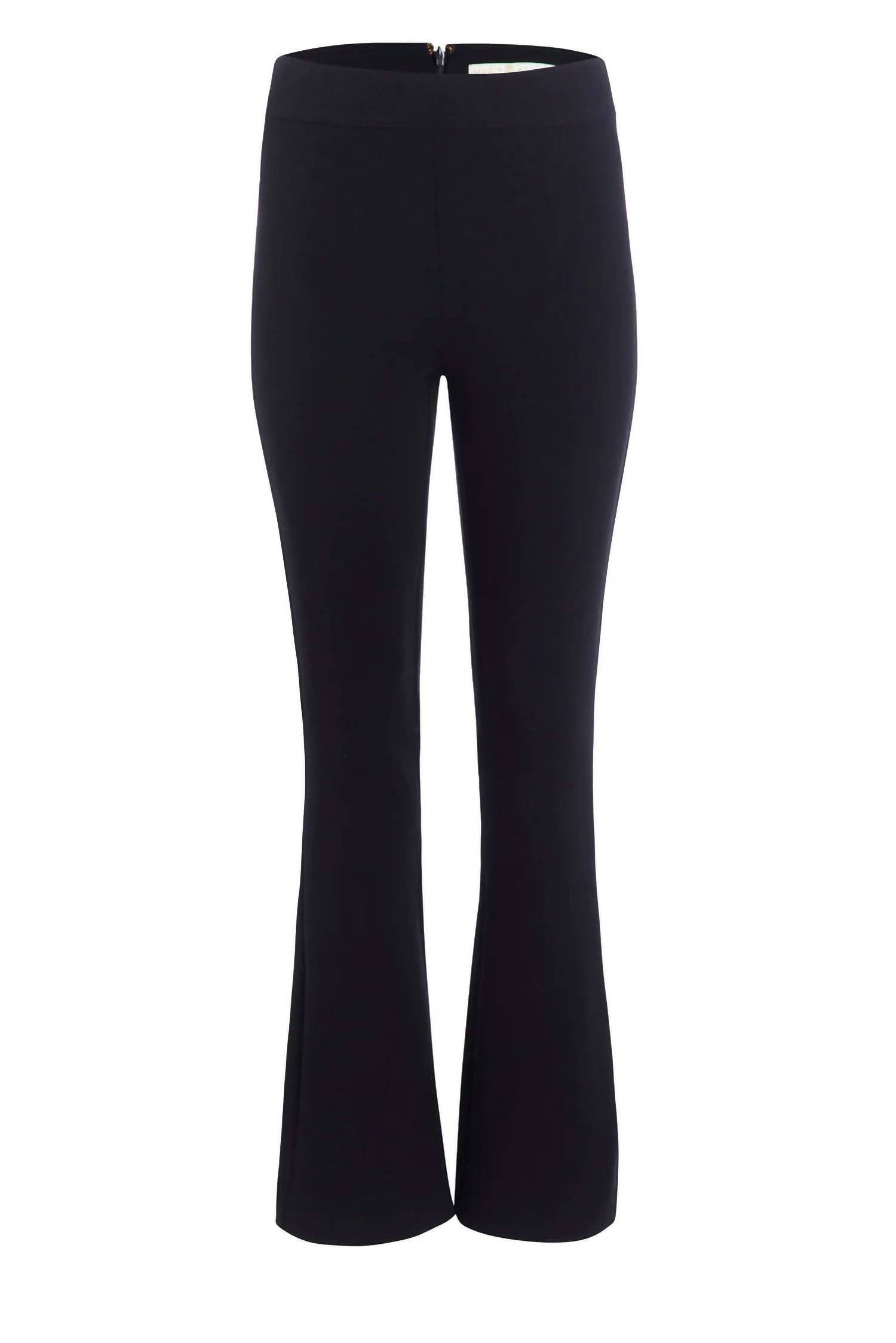 Calças levemente flare estão na moda agora, e estas não são exceção. Combine-as com sua camiseta favorita para um look mais casual ou com sua blusa de botões favorita para uma saída à noite. Estas calças chiques em preto clássico têm um corte justo e ajustado que se alarga levemente nos tornozelos, proporcionando uma silhueta elegante. O design dispensa bolsos e possui um zíper invisível nas costas. Confeccionadas em 100% poliéster. Tamanho real. Caimento confortável e solto. Somente lavagem a seco.