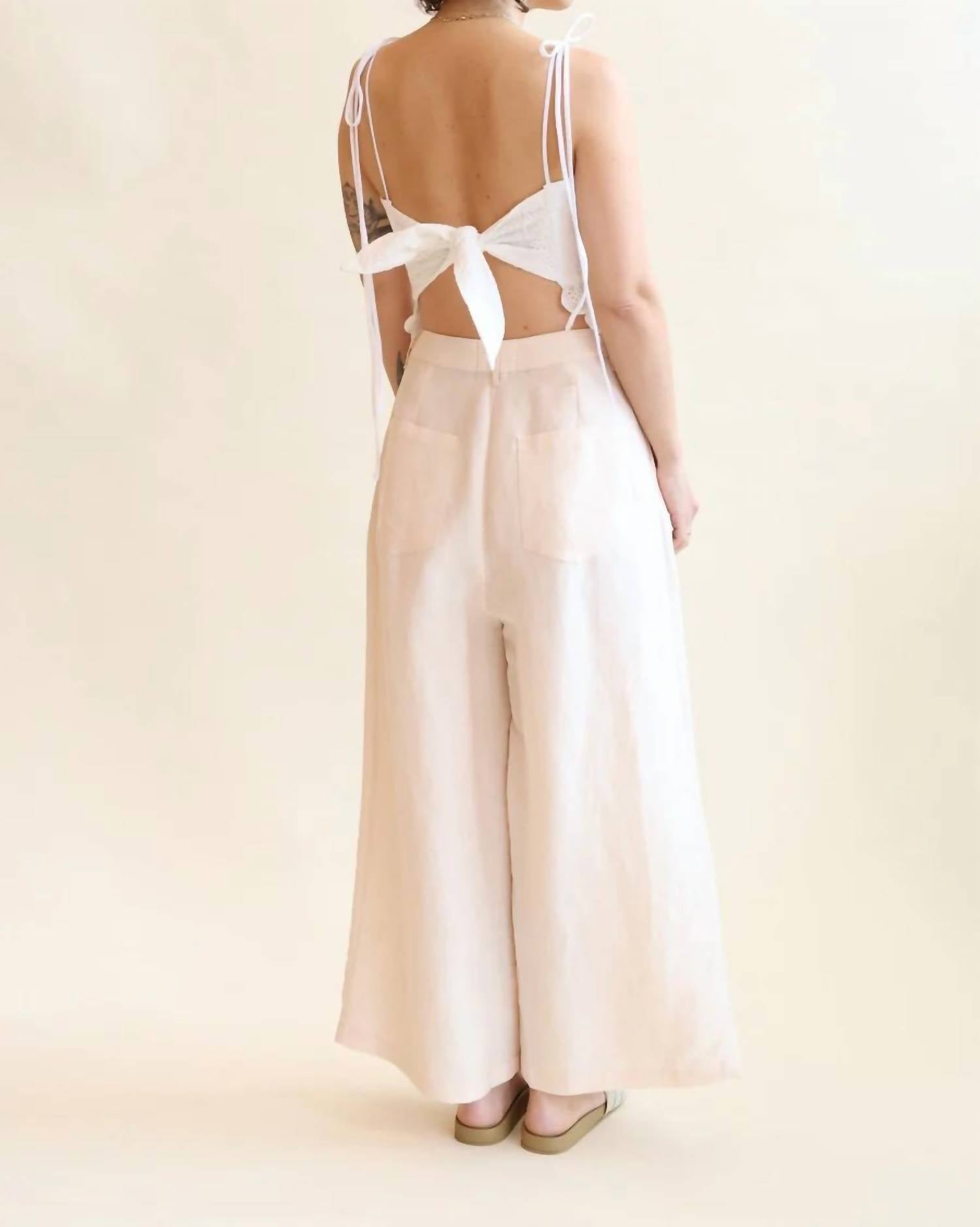 Introducing the Meadows Sanne Wide Leg Trouser in Pearl, designed for a minimalist, yet sophisticated look. With a high-rise, pleated waist and zip closure, these trousers offer a regular fit with a voluminous, wide-leg style. Crafted from a blend of 35% cupro, 30% tencel, and 35% linen, they are lightweight and incredibly soft to the touch, featuring practical pockets for added convenience. Care for these elegant trousers by machine washing cold with similar colors and laying flat to dry, perfect for spring dinner parties and Thanksgiving gatherings.