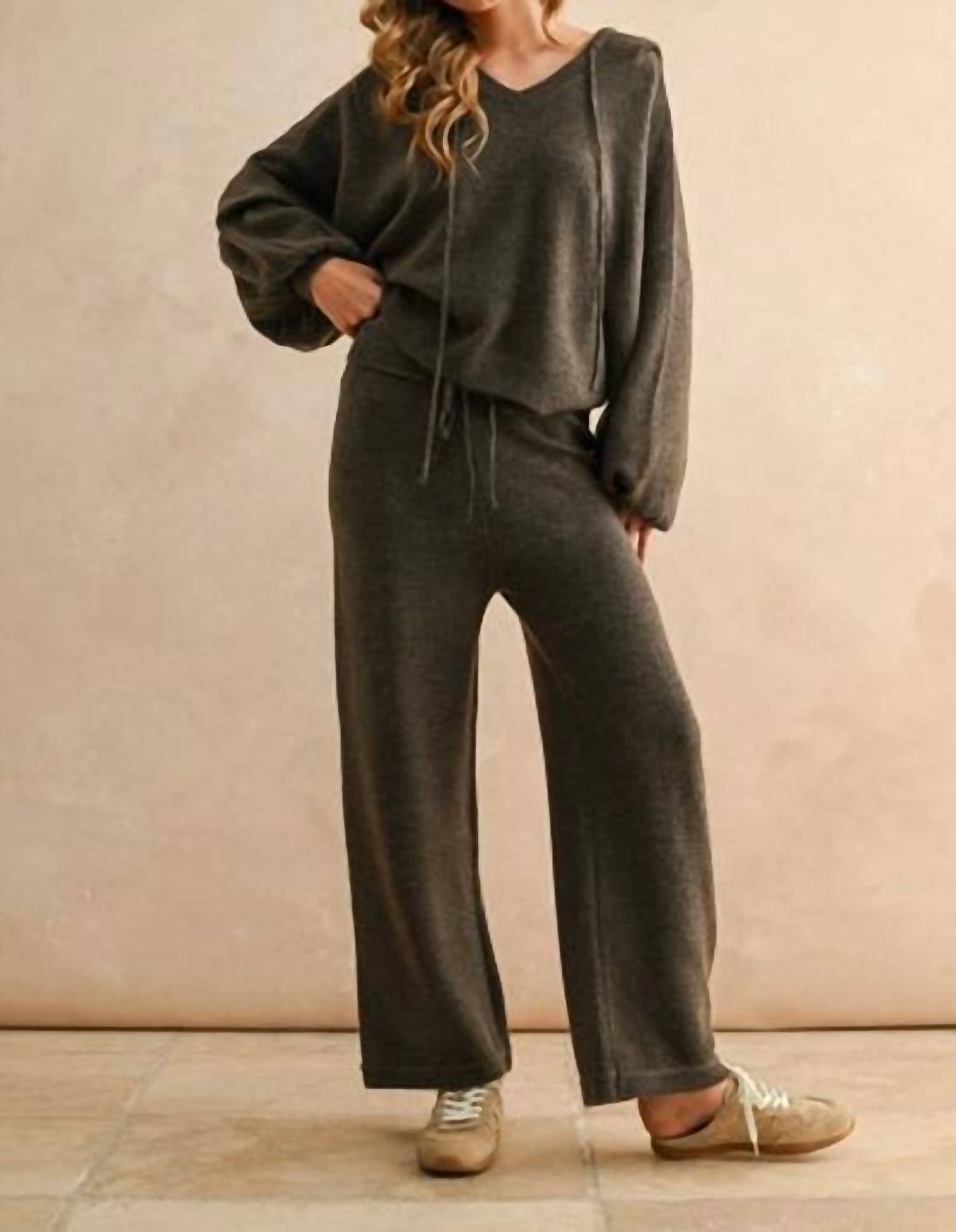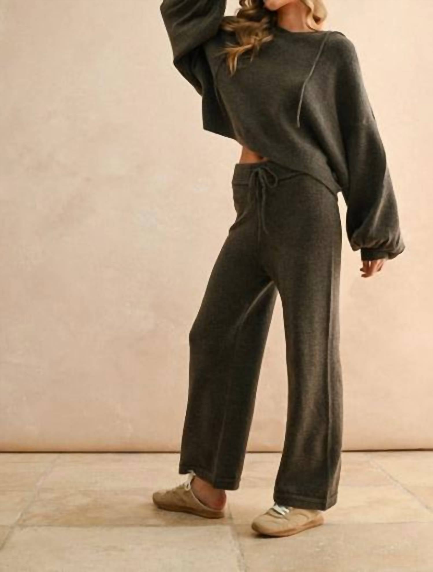 A straightleg pant that workes season after season. Dress these up with your favorite blouse or keep it casual with your go-to tee. Introducing the Two Tone Sweater Pants by MIOU MUSE, a chic addition for any wardrobe in a rich Chocolate hue. Designed for comfort, these straight leg pants feature a high-rise elastic waistband with an adjustable drawstring for a custom fit. Crafted from 74% Acrylic, 22% Polyester, and 4% Spandex, they offer a cozy feel. Closure: Pull on. Care: Machine wash and tumble dry. Model wears a size small, with measurements of a 26" inseam and a 13" (26") waist.