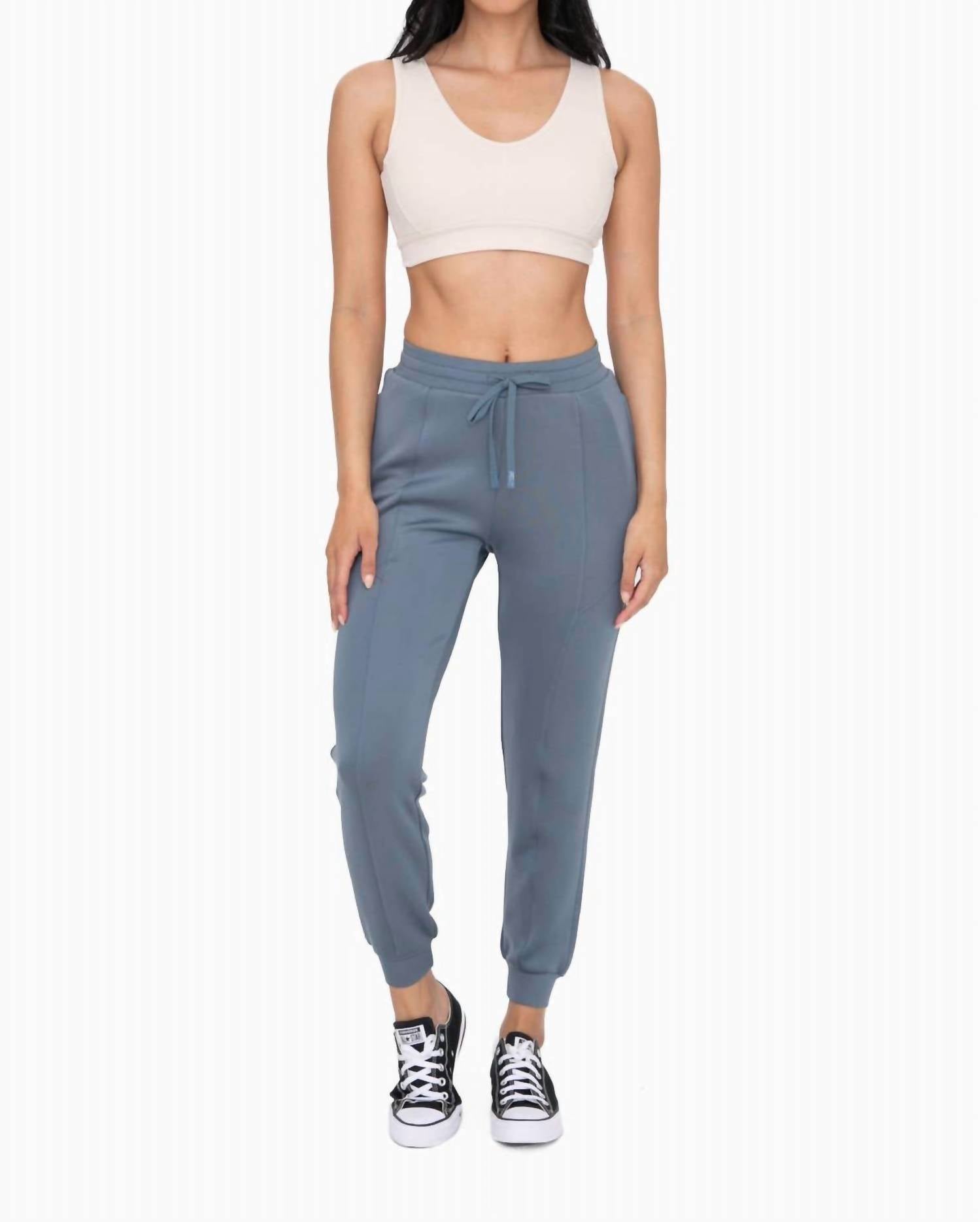 A calça perfeita para correr pela cidade e ficar estilosa enquanto faz isso. Apresentamos a Calça Jogger de Cintura Alta com Punhos da Mono B, perfeita para a mulher estilosa e ativa. Esta calça jogger possui um fecho de amarração confortável e bolsos, além de cintura alta e pernas afuniladas para garantir um ajuste perfeito. Fabricada na China, ela é composta por uma mistura de 92% poliéster e 8% elastano, que absorve a umidade e se estica em quatro direções, proporcionando propriedades antibacterianas e hipoalergênicas. O cuidado é fácil: lave na máquina e seque na secadora para mantê-la sedosa e resistente a rugas, ideal para ocasiões esportivas e de treino no verão.
