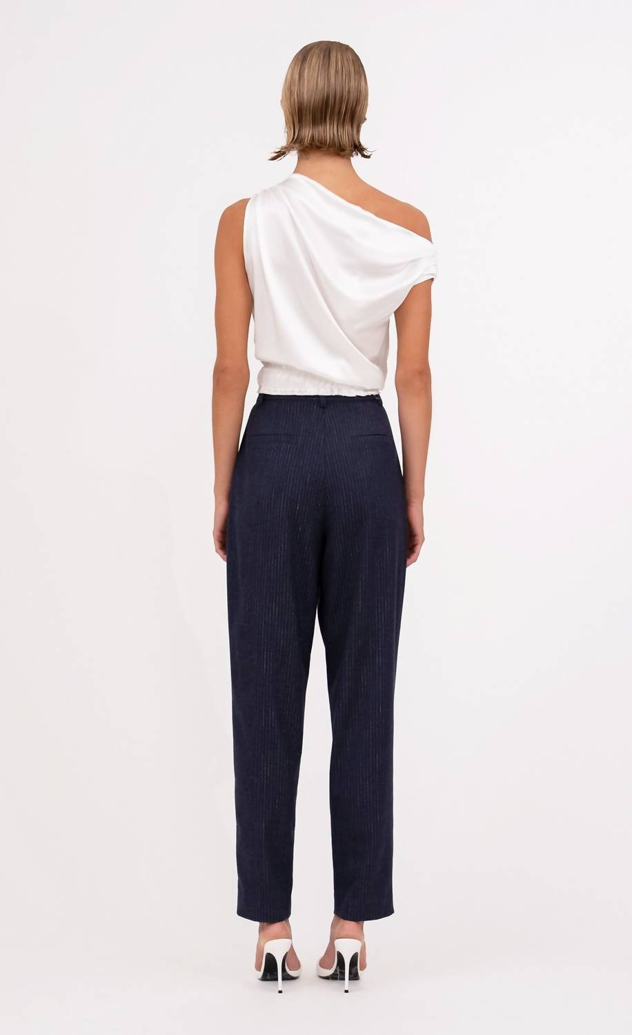 Uma perna reta perfeitamente ajustada que você vai querer em todas as cores! Eleve seu guarda-roupa com a Calça Reta Alessia da Nonchalant Label, criada para a mulher moderna. Esta calça de cintura alta apresenta um design elegante de perna reta e um fecho de pressão elegante, oferecendo estilo e funcionalidade. A cor crepúsculo com listras prateadas adiciona um toque sofisticado, ideal para diversas ocasiões. Esses elementos harmoniosos criam uma peça essencial que transita perfeitamente do trabalho para eventos especiais.